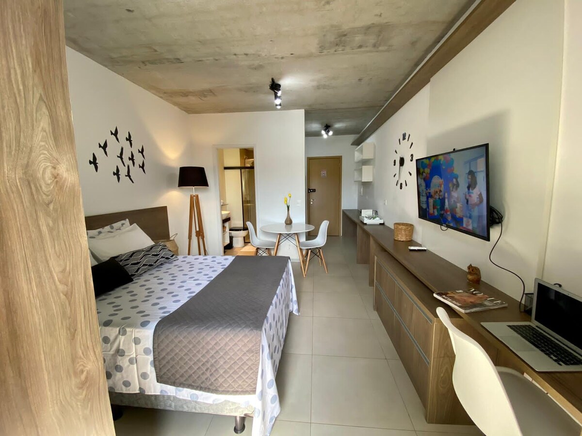 📍Suíomh Iontach - Sa chomharsanacht is luachmhaire de Marília Alto Cafezal - Níl ach nóiméad ón mbóthar mór. - In aice le Avenida Rio Branco, ospidéil, bainc, bácúis, ollmhargaí. - Timpeallaithe ag na bialanna, na beáir agus na pizzerias is fearr sa chathair. Tairgeann 🏠an tÁrasán: - Dearadh nua - aimseartha teolaí - Teilifís Chliste + Idirlíon Snáithín Optach - Aerchóiriú do do chompord - Glas leictreonach - Geata leictreonach agus monatóireacht 24 uair an chloig