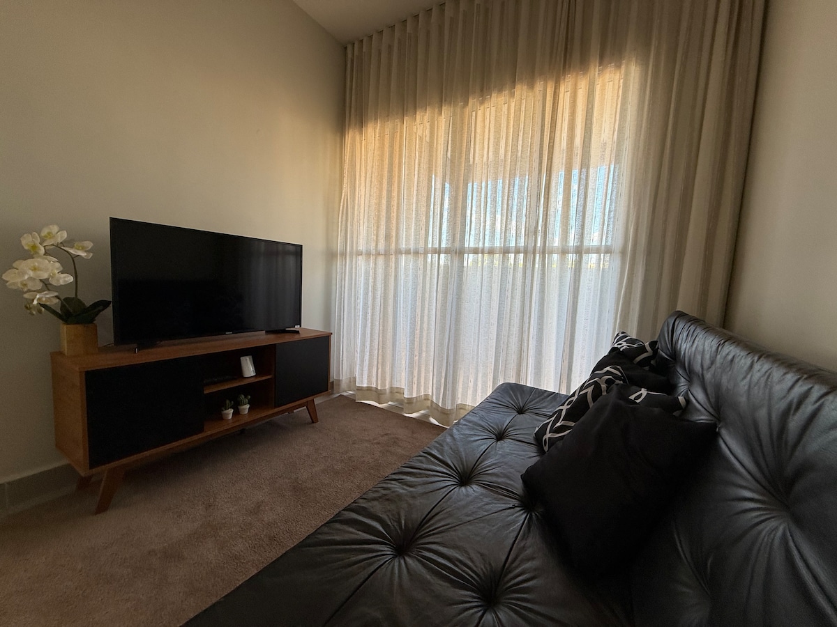 Árasán nua - aimseartha i gcomharsanacht chiúin chiúin shábháilte in Marília. Oiriúnach do pheataí. Tá 2 sheomra leapa ann (leaba dhúbailte le Teilifís Chliste, agus leaba dhúbailte le deasc agus cathaoir eirgeanamaíoch), seomra suite comhtháite le leaba thoilg do 2 aoi agus teilifís chliste, cistin feistithe. Árasán le linn snámha, clós súgartha, páirceáil clúdaithe. Gach ceann níos lú ná 5 nóiméad ón ionad, ó bhialanna, ón ospidéal agus ó shiopaí. I gcás seiceáil isteach i ndiaidh 3 p.m., b'fhéidir go mbeadh sé riachtanach an teacht a chur in iúl roimh ré. Seiceáil isteach 24 uair an chloig