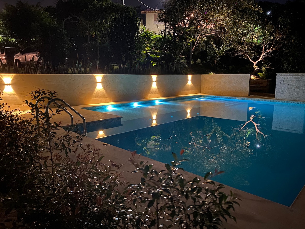 Teach ina bhfuil 4 sheomra leapa, 4 sheomra folctha, ar fáil, aeráid the, jacuzzi, linn snámha, BBQ, gar do limistéar paraeitilte, 25 nóiméad ó stáisiún seirbhíse TIGER MARKET in Floridablanca. Tá an teach foirfe do phleananna agus do chruinnithe le teaghlach agus le cairde. Tá córas fuaime LG le Bluetooth agus 400 vata ann. Ní cheadaítear aon trealamh fuaime mór breise a sháraíonn na deicibeilí ceadaithe. Braitheann an praghas ar an líon daoine san áirithint.