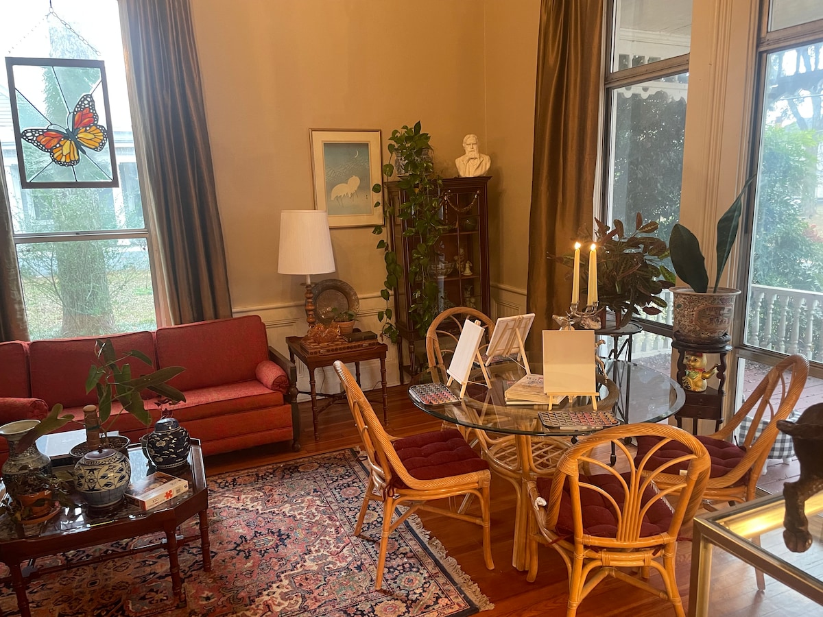 Stiúideo príobháideach gan Smál i bpobal locha taibhseach uasscála díreach faoi bhun 10 nóiméad ó Chearnóg Covington. Tá áit suí agus bia mór meánmhéide ann agus clúid álainn seomra leapa ina bhfuil leaba bhanríona. Neart scagairí solais nádúrtha trí, ag cruthú atmaisféar teolaí fáilteach. San áireamh tá meaisín níocháin agus triomadóir, cistin iomlán, tobán/cithfholcadán le chéile, seirbhísí idirlín agus sruthaithe. Mar sin, gar do shiopadóireacht, do bhia agus do nithe is díol spéise áitiúla amhail Turais Vampire Restauries, Fox Vineyard agus Winery! Tá fáilte roimh pheataí!