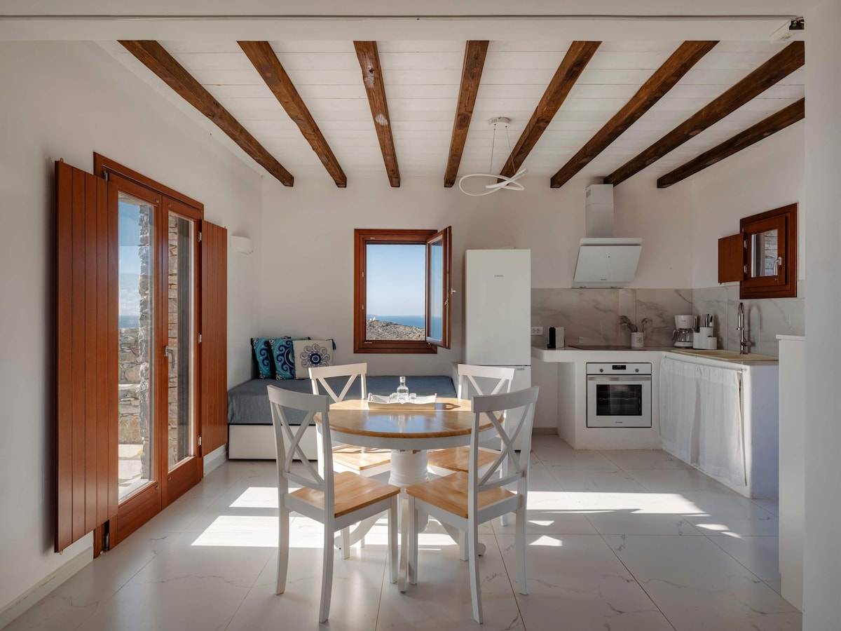 Teach stairiúil Veinéiseach le radharc na farraige díreach i gcroílár an Castro. Tá an teach 800 bliain d'aois suite i bpríomhshráidbhaile an oileáin “Chora” agus tá sé mar chuid de Chaisleán na Veinéise – ar a dtugtar an Castro, atá suite díreach ar imeall aille ard, ag tairiscint radharc iontach ar an Aeigéach óna dhá verandas draíochta radhairc farraige. Áit iontach le fanacht mar go bhfuil sé i gcroílár an tSráidbhaile – suite go lárnach – agus áit go leor le fanacht ag an am céanna – toisc nach féidir le carranna ar bith dul isteach i gCeantar Castro.