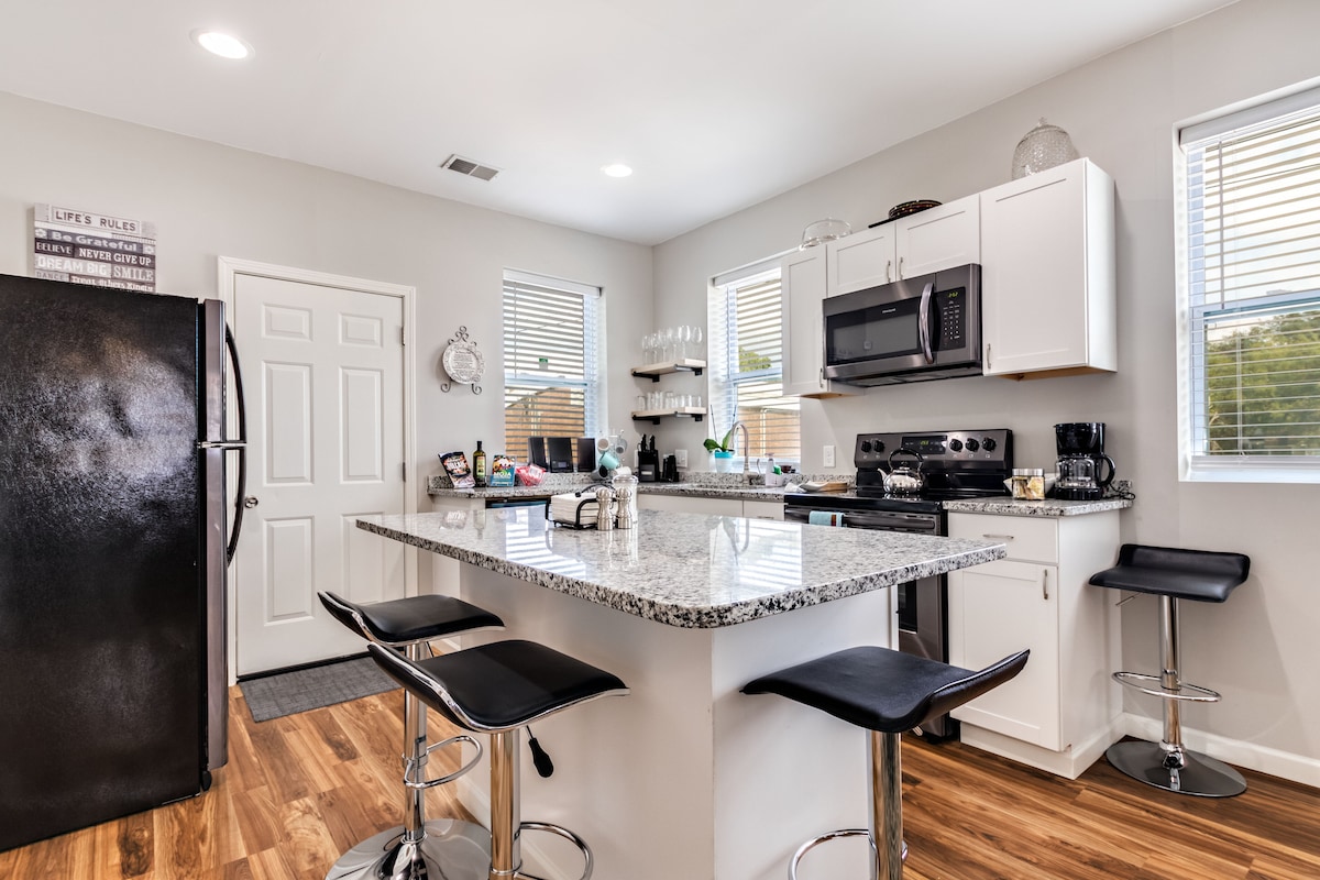 Fáilte go dtí ár dteach gleoite 3 sheomra leapa, 1 sheomra leapa atá suite i gcroílár Park Circle, North Charleston! Cibé acu an bhfuil tú ag tabhairt cuairte ar laethanta saoire teaghlaigh, ar shaoire ghearr rómánsúil, nó ar thuras gnó, cuireann ár dteach an meascán foirfe de chompord agus áisiúlacht ar fáil. Agus é suite go lárnach, níl i gCiorcal na Páirce ach nóiméad ón mbia, ón tsiopadóireacht agus ón tsiamsaíocht is fearr in North Charleston. Agus draíocht stairiúil agus tránna i lár chathair Charleston gearr uait, is é ár dteach an bonn foirfe chun iniúchadh a dhéanamh ar an Ísealtír.