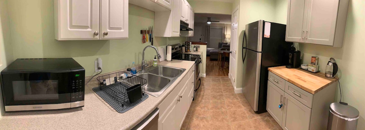 Tá an t - árasán nua - athchóirithe ar leibhéal níos ísle seo neadaithe i gcomharsanacht shíochánta Forest Hills. Tá ár spás in áit iontach chun taitneamh a bhaint as gach a bhfuil le tairiscint ag Durham agus a thagann le gach rud a bheidh uait le bheith ar do shuaimhneas. Nóiméid ó bhialanna den scoth, spraoi amuigh faoin aer, agus siamsaíocht chultúrtha. Bain sult as tráthnóna ag DPAC, cluiche daorchluiche Durham Bulls, cluiche fuinniúil leadóige ag páirc Forest Hills, nó spaisteoireacht shuaimhneach trí Ghairdíní Duke. Níl ach nóiméad ar fad ónár ndoras.