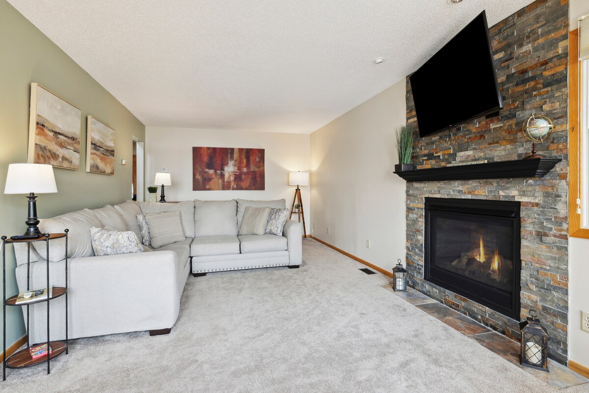 Is leatsa an leibhéal iomlán níos ísle den teach le bealach isteach príobháideach. Fáilte go Loons Nest! Suite nóiméad ó Stillwater… áit bhreithe 1848 Minnesota atá suite ar Abhainn álainn St. Croix! Áit ina mbíonn báid abhann roth seaschéaslóireachta barántúla agus gondolas faoileann na huiscí. Is leatsa siopadóireacht, bia, lóistín agus siamsaíocht na Príomhshráide Stairiúla taobh istigh den bhaile gleoite seo. Is gearr ó theorainn Twin Cities Minneapolis/St. Paul agus Wisconsin é Beautiful Stillwater.