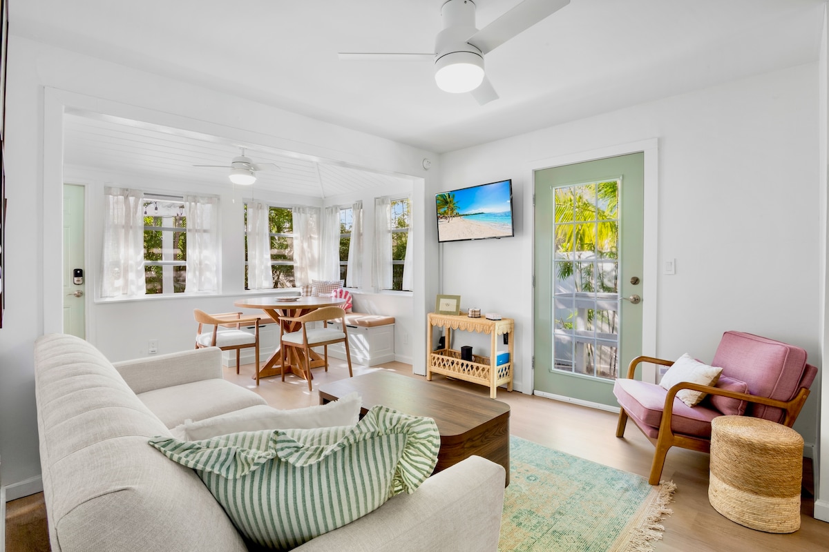 Teachín trá radharc uisce atá feistithe go hiomlán ar Oileán álainn Anna Maria go díreach trasna na sráide ó thrá ghainimh bháin agus ó Mhurascaill Mheicsiceo. 1 Aonad folctha 1 seomra leapa a chodlaíonn 4 leis an mbanríon tarraing amach an tolg. Cuirtear cathaoireacha trá/scáthanna fearthainne/cláir bhoigíní/seomra níocháin, srl. ar fáil. Trí bhloc ó Shráid an Droichid stairiúil le bialanna agus beáir bhríomhara. Tralaí oileán saor in aisce agus trasna an droichid ó shráidbhaile iascaireachta Cortez. Páirceáil saor in aisce lasmuigh den tsráid.