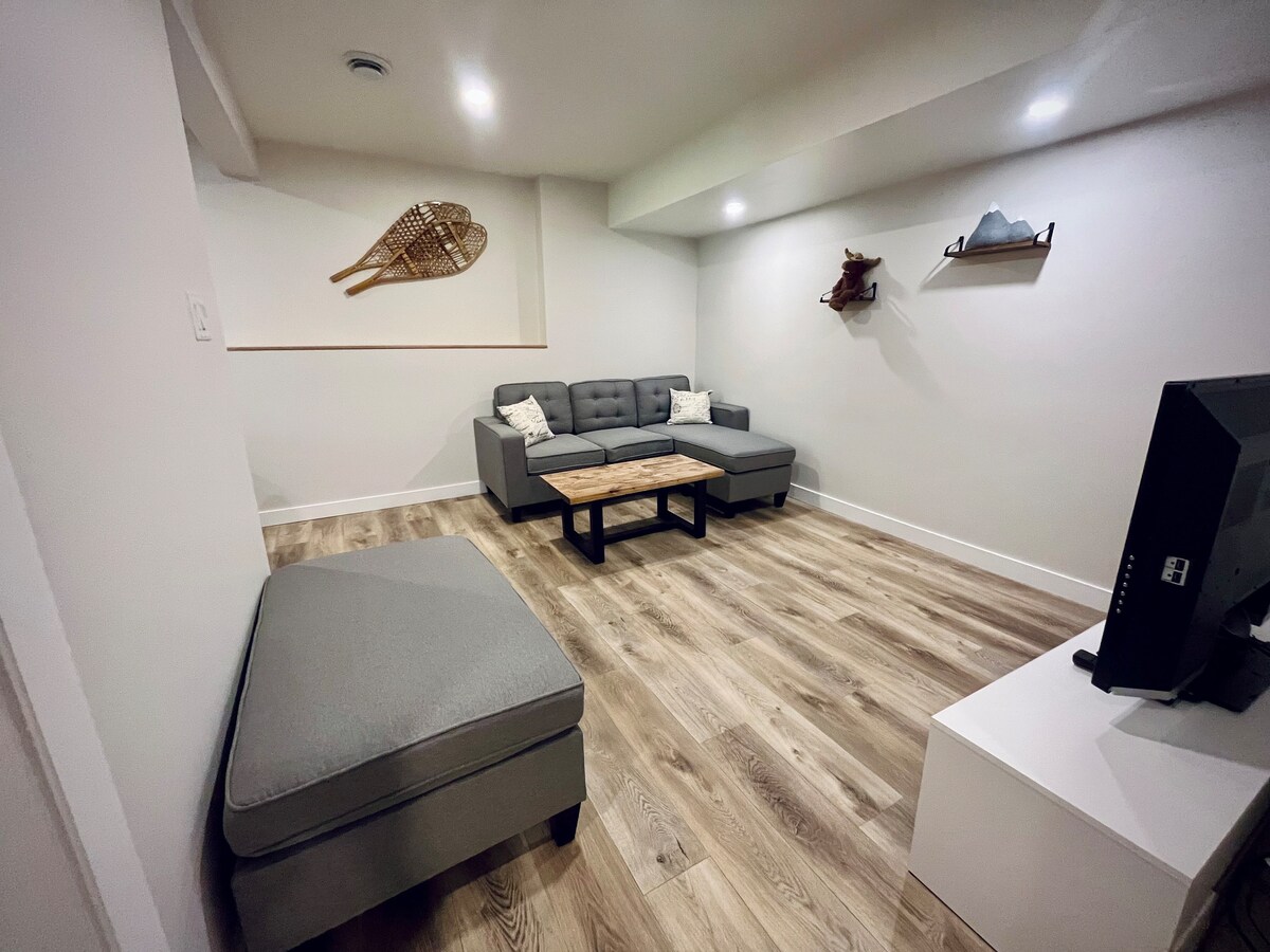 🏡 Bain sult as compord Cranbrook, BC inár seomra suite ar leibhéal níos ísle w/cistin lánfheistithe a osclaíonn chuig seomra suí teolaí ina bhfuil teallach gáis & seirbhísí teilifíse/sruthaithe 55"Freastalaíonn an seomra 🤗 seo ar suas le 6 aoi w/queen hide - a - bed sa seomra suí & dhá sheomra leapa gach w/banríon nua 10" leaba cúr cuimhne & teilifíseán 32"I measc na saoráidí 😎 breise tá níochán in - suite w/glantach curtha ar fáil, seomra folctha stocáilte w/earraí níocháin ar mhéid taistil & clós príobháideach fálaithe do mhadra & páirceáil ar an láthair do dhá charr 🚙 🚗
