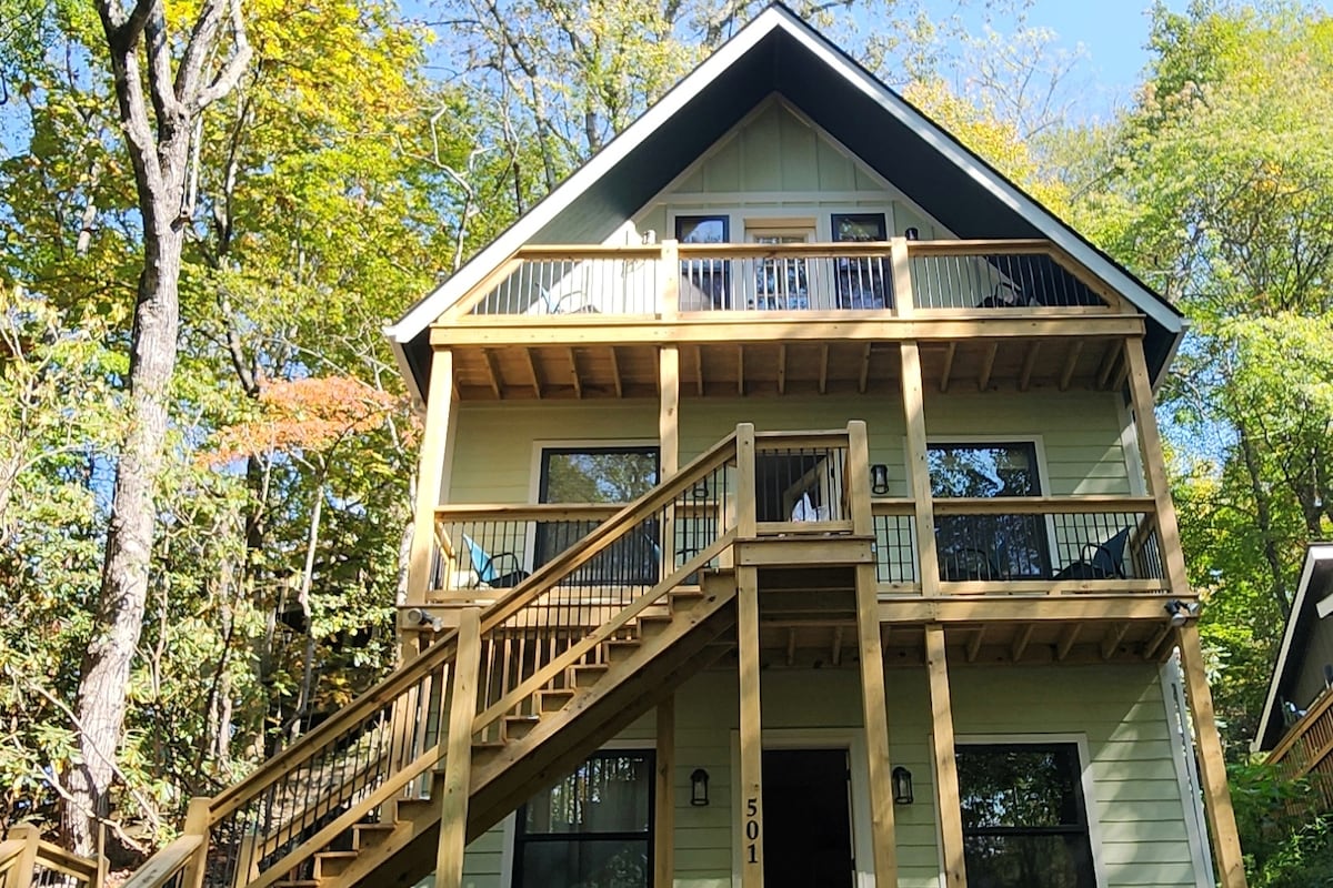 Fáilte go dtí an Moody Mountain Getaway, cábán teolaí atá suite ag bun Shliabh an tSeanathair in Banner Elk, NC. Ag tairiscint radhairc iontacha sléibhe agus solas nádúrtha ag doirteadh isteach ó gach treo. Trí sheomra leapa, dhá áit chónaithe, tonna de spás lasmuigh agus saoráidí pobail amhail linn snámha, cúirteanna leadóige, agus cosáin fánaíochta. Is é seo an áit iontach chun an chuid is fearr den tír ard a bhlaiseadh. (Díreach 15 nóiméad ó Shliabh Sciála Siúcra, Sliabh Feá, agus Boone!)