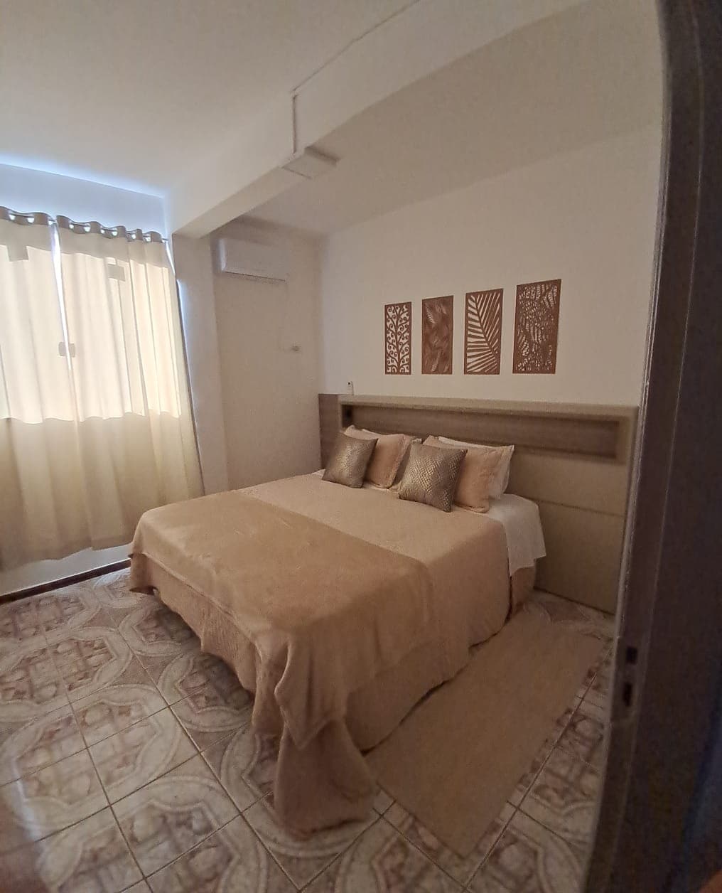 Apartamento em prédio alto padrão, localizado no centro da cidade, no centro gastronômico. Apartamento fica no 7⁰ andar, com os recursos de acessibilidade, segurança, garagem e portaria 24h. Ambiente novo, com todos os utensílios de cama mesa e banho de qualidade, móveis planejados, eletrodomésticos novos, wifi e todos os itens necessários para uma ótima acomodação. Possui uma cama de casal tamanho queen no quarto. Disponibilizamos um colchão de solteiro adicional para a terceira pessoa.