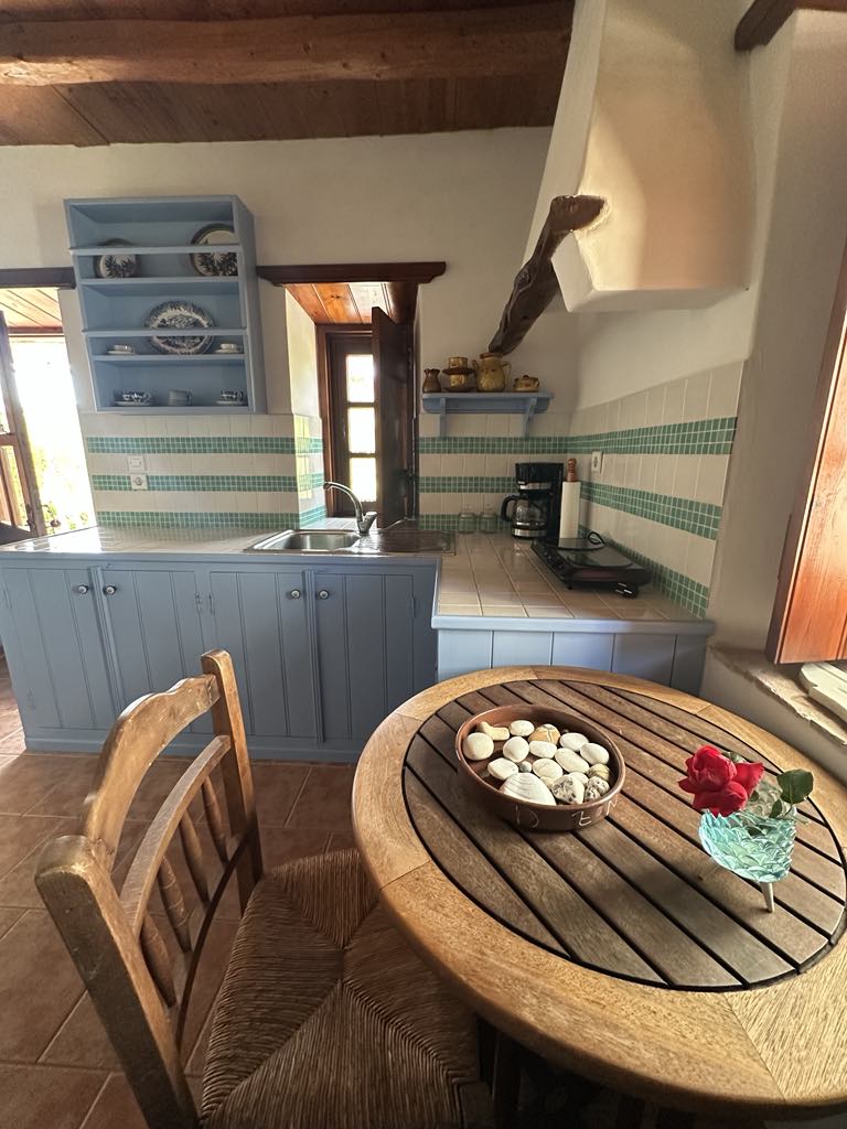 Neadaithe i gcroílár eastát álainn 40 acra, i suíomh suaimhneach ag breathnú amach ar thrá Kampos, tá an teach beag gleoite seo oiriúnach le haghaidh eispéireas saoire barántúil agus suaimhneach Patmos.
