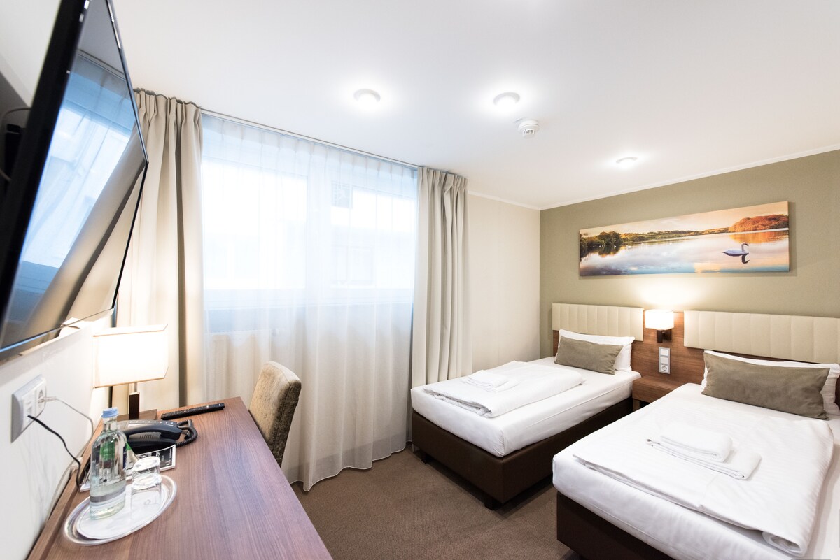 Welcome to your urban retreat! Our Standard Room offers modern comfort with sleek design touches. Relax in a cozy atmosphere after a busy day exploring Frankfurt. Equipped with all essentials (air condition, espresso machine, rain shower!) for a comfortable stay, it's perfect for solo travelers or couples.