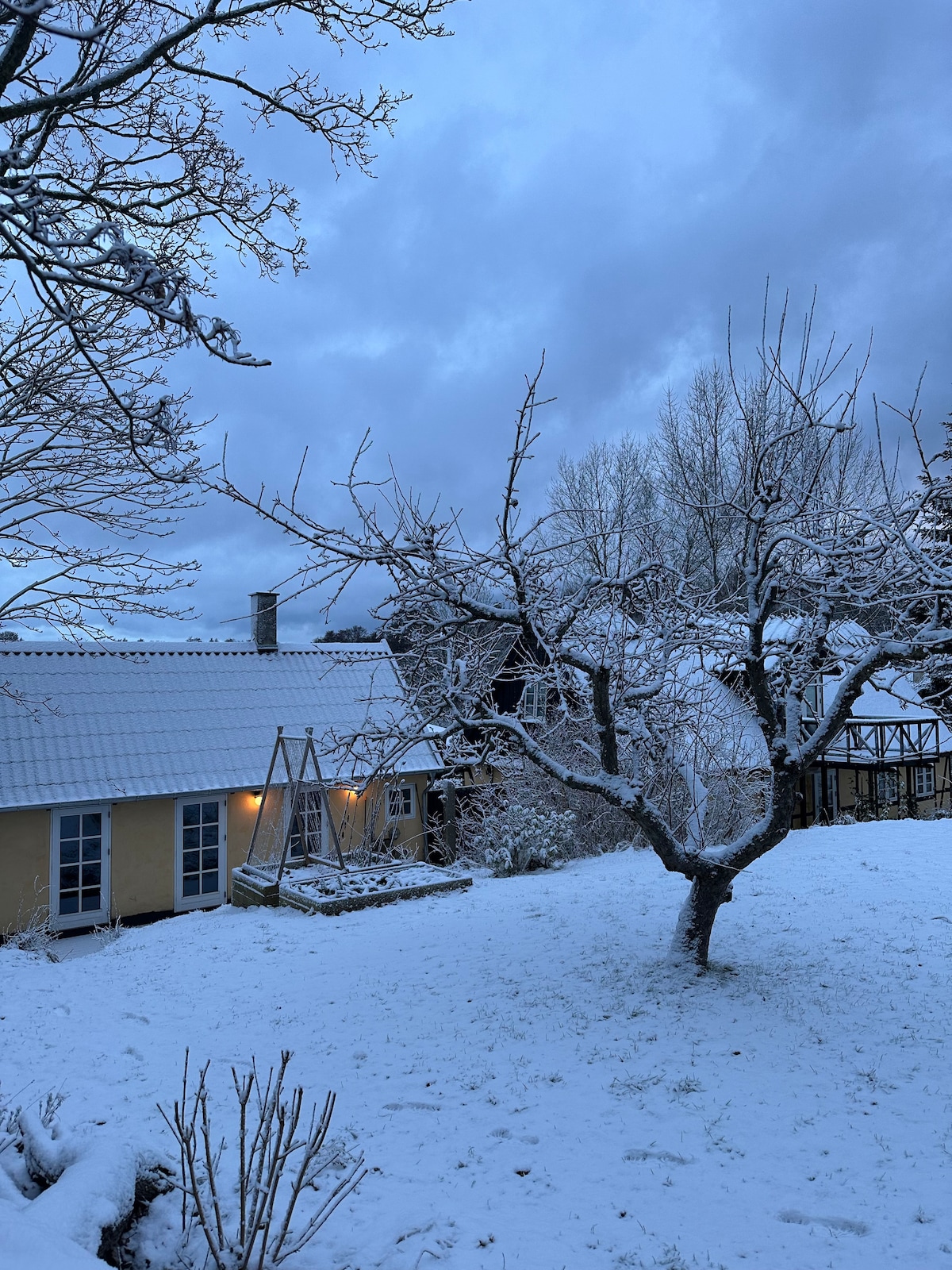 Nyd kulturen i nærområdet og vend derefter tilbage til vores rolige omgivelser, hvor du måske hører spætten eller natuglen, ser en frø hoppe over vejen – eller får et glimt af et rådyr, der forsigtigt bevæger sig gennem haven i skumringen. 🌾🌲🦉 Vi tilbyder et nyrenoveret anneks med egen indgang, opholdsrum, køkken samt toilet og badeværelse. Her kan du slappe af i fredelige omgivelser og nyde den hyggelige atmosfære – måske med en kop kaffe på terrassen med udsigt til haven og de åbne marker.