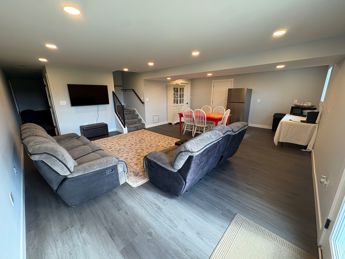 Bain sult as saoire ghearr phríobháideach tíre sa seomra fairsing seo atá lán le solas ar leibhéal níos ísle, agus í suite faoi eastát coillteach suaimhneach. Le bealach isteach príobháideach, tá seomra leapa teolaí, folcadán iomlán, agus áit choiteann fáilteach sa spás dea - cheaptha seo atá foirfe chun do scíth a ligean nó chun oibriú. Taitneoidh na cuntair beáir & cistine, micreathonnán, friochtán aeir, keurig agus grianchloch go mór leat. Scaoil isteach an amharclann bhaile, linn snámha súgartha nó Pac - Man, nó téigh taobh amuigh chuig do phaitió le firepit, timpeallaithe ag crainn & aer úr.