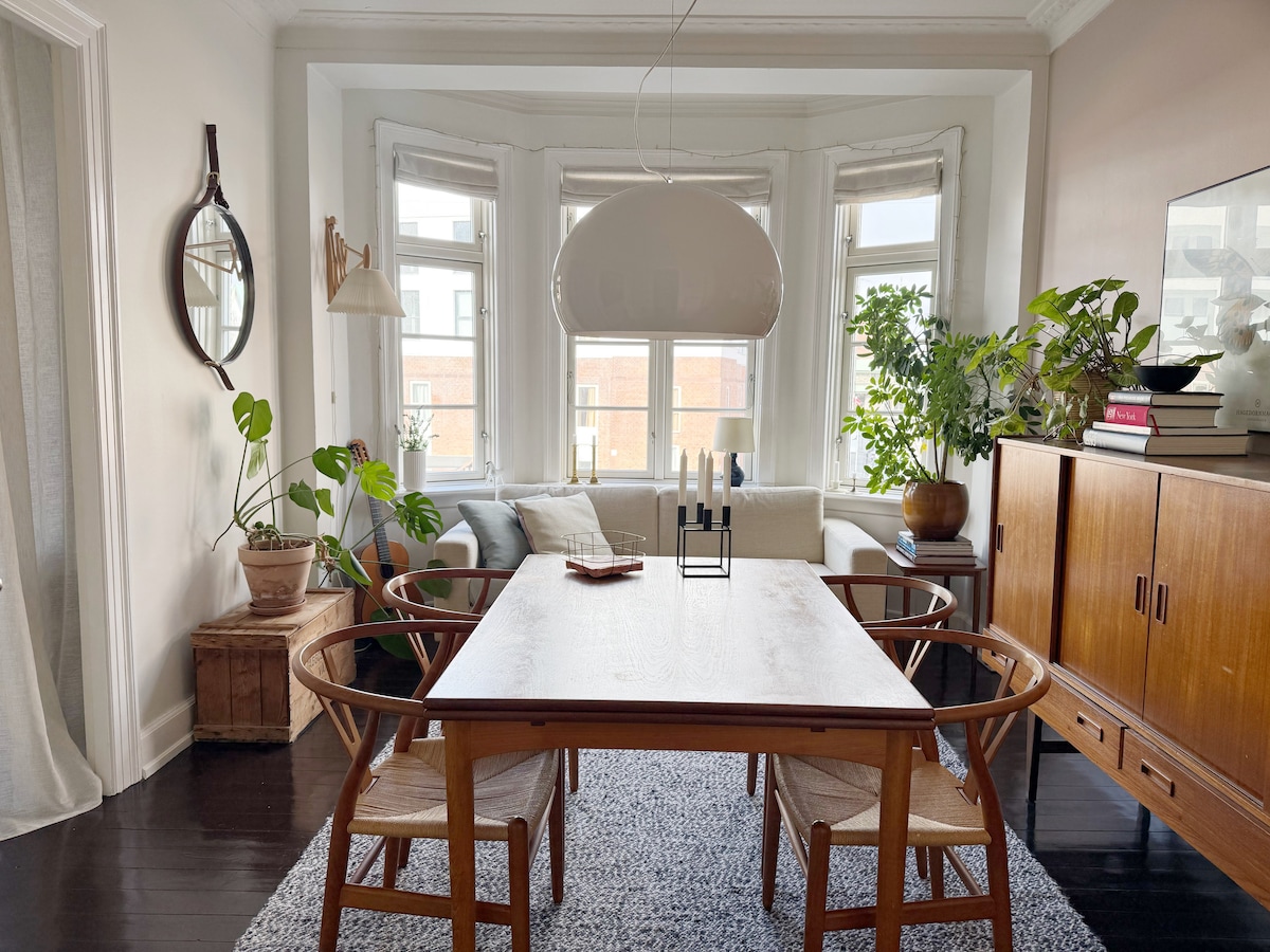 lovely apartment located by the beautiful lakes, in Copenhagen. Everything is within walking distance, such as Tivoli, Strøget, Torvehallerne, with its large selection of food, wine and generally just a good atmosphere of people from Denmark and a lot of tourists. The apartment itself exudes personality and functions as a private home, where you are in direct contact with people who either walk or cycle by and not least the many runners who use the lakes as a breathing space for their exercise.