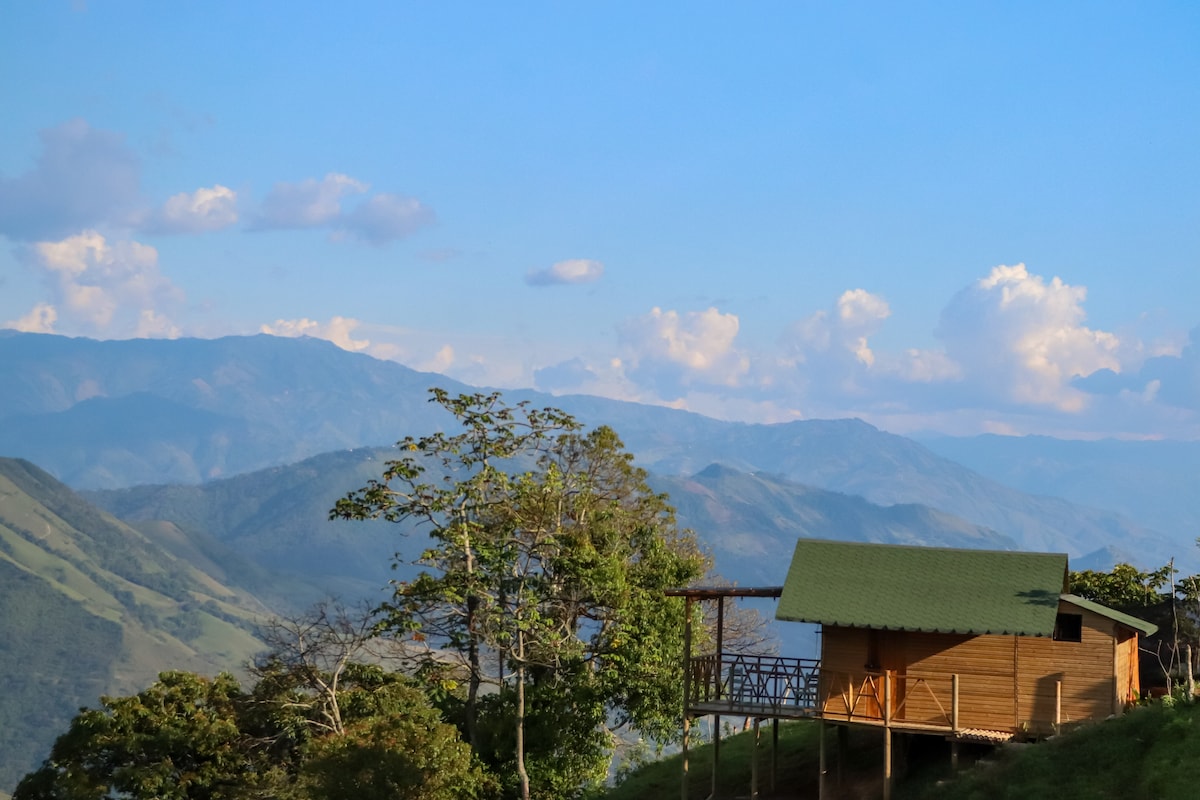 Fáilte go El Indio Ecolodge, tearmann uathúil suaimhneach sa Veinéis, Antioquia, díreach 50 nóiméad ó chathair Medellín! Samhlaigh cábán gleoite adhmaid le radhairc thar na bearta ar bholcán codlata, an CERRO BRAVO maorga. Tugann an ósais chúlráideach seo atá timpeallaithe ag áilleacht nádúrtha saoire dhodhearmadta duit, atá suite go straitéiseach idir an Veinéis agus Fredonia, díreach 15 nóiméad ón dá bhaile.