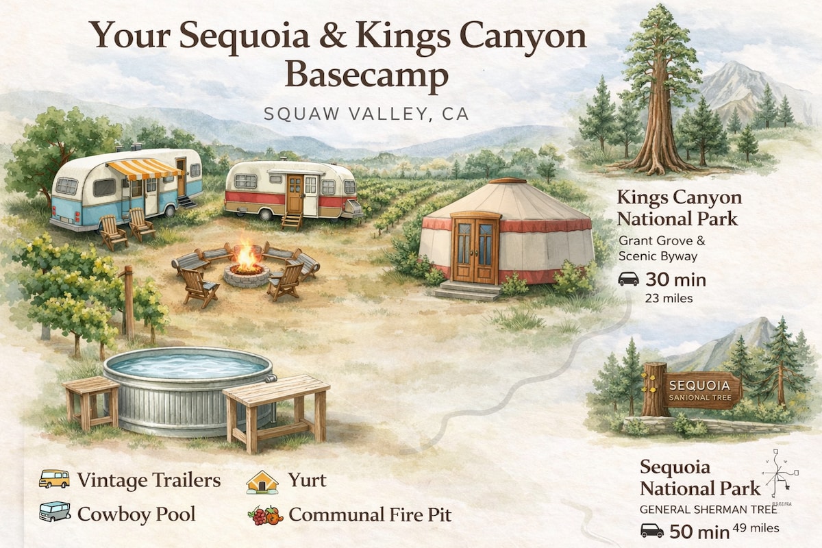 Déan iniúchadh ar bhailte beo agus áille rainse California ag an ngeata chuig Páirceanna Náisiúnta Sequoia & Kings Canyon. Cuirimid an dúlra le chéile le só, suaimhneas le gníomhaíochtaí spraíúla, bunchnoic le dul ag fánaíocht, linn snámha ,radhairc iontacha,réaltaí le breathnú orthu. An áit a mbíonn beithígh ag innilt agus ag crochadh capall. Tá turais ar chapall agus eispéiris eachaí ar fáil. Móstán capall ar fáil ar rainse, na mílte cosán. Tá do shvuít ina sciathán den phríomhtheach feirm. Tá rochtain ar Spa jacuzzi ar fáil. Ná caill saol na rainse atá ag imeacht.