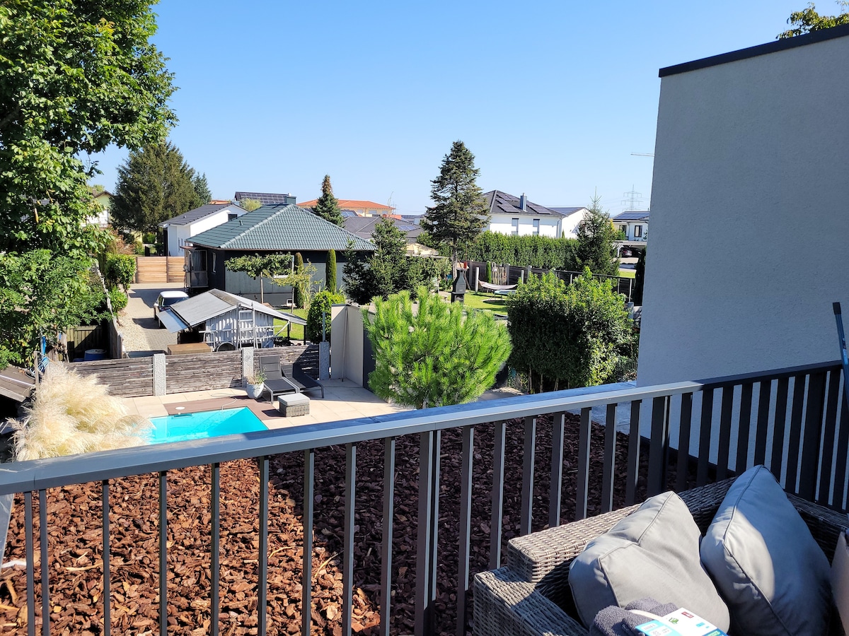 Tar agus lig do scíth agus bíodh fanacht taitneamhach agat i gcroílár villa i stíl na Meánmhara le gairdín soiniciúil nach bhfuil ach 15 km ó Europapark agus Rulantica. I lár na margaí Nollag Alsatian. Fanfaidh tú i sealla lánfheistithe neamhspleách ina bhfuil seomra suí, seomra cithfholcadáin, seomra spá ina bhfuil tobán te, seomra leapa agus cistin. Cuirimid tuáillí, triomadóir gruaige, glóthach chithfholcadáin, meaisín caife le cochaill, teilifís le Netflix agus Amazon Prime, WI - FI ar fáil duit...