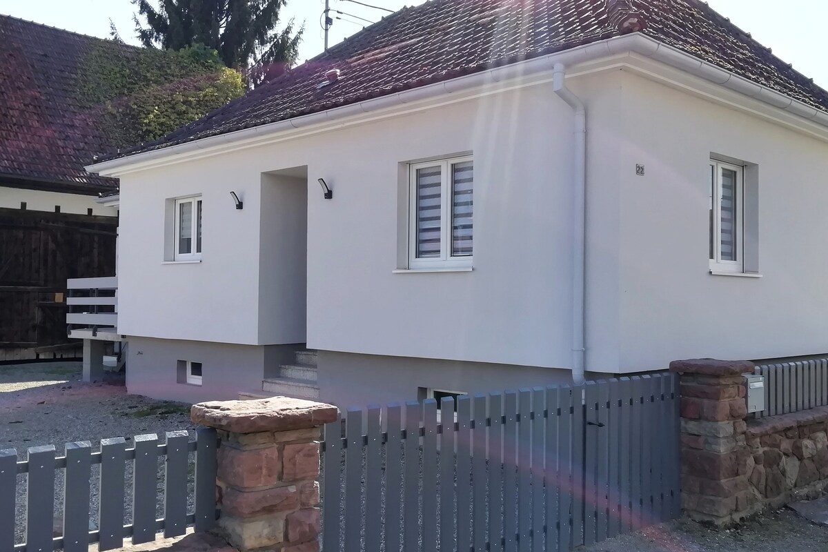 Tá an t-árasán (50 m2) ar an gcéad urlár de theach scoite ina bhfuil 1 bhealach isteach ar leith. Téamh+aerchóiriú Gar do Strasbourg-Colmar - EuropaPark-Vosges - an Fhoraois Dhubh. Beidh an-dúil agat i m'áit faoin tuath, sráidbhaile ina bhfuil 900 áitritheoir - ciúin. Tá seomra leapa + teilifíseán, 1 seomra folctha ina bhfuil cithfholcadán + folcadh, 1 seomra ina bhfuil leithreas, 1 chistin fheistithe + seomra suí ina bhfuil 1 leaba thoilg 140 (2 dhuine) + cathaoir uillinne leapa do dhuine amháin.+Teilifís. Is féidir leaba linbh a chur leis. Tá línéadach leapa agus tuáillí ar fáil.