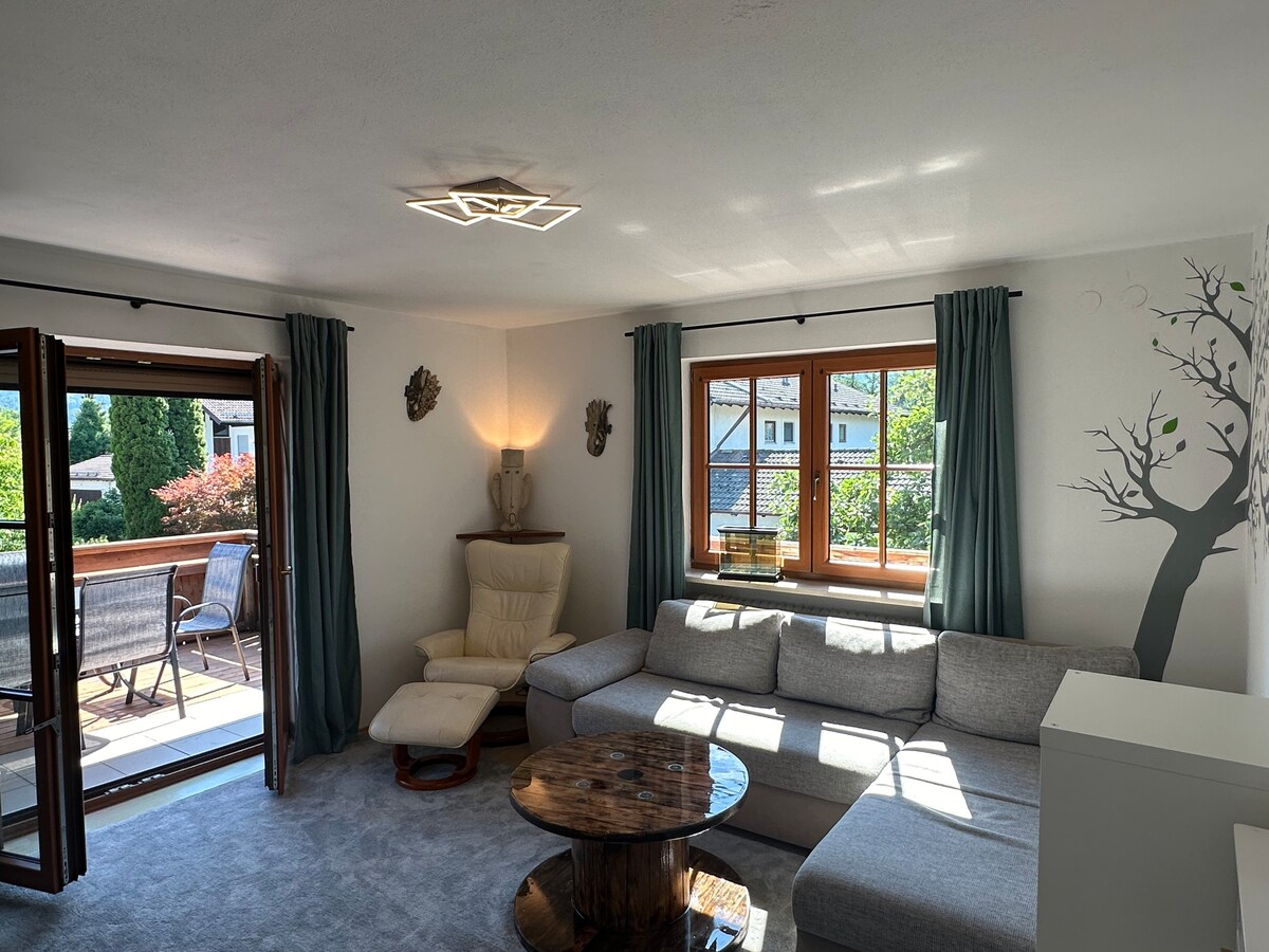 Fáilte - Fáilte! Árasán álainn sa Chiemgau. Ón mbalcóin mhór tá radharc álainn agat ar na sléibhte. Cibé acu an sciáil tras - thíre sa gheimhreadh nó rothaíocht fánaíochta / sléibhe sa samhradh - tá tú i lár an dúlra láithreach. Agus i gceann cúpla nóiméad sa sráidbhaile. Árasán álainn san Alpa Chiemgau. Ón mbalcóin tá radharc iontach agat ar na sléibhte. Cibé acu sa gheimhreadh nó fánaíocht / rothaíocht sa samhradh - an áit fhoirfe go léir laistigh de 5 nóiméad siúil go dtí lár an tsráidbhaile.