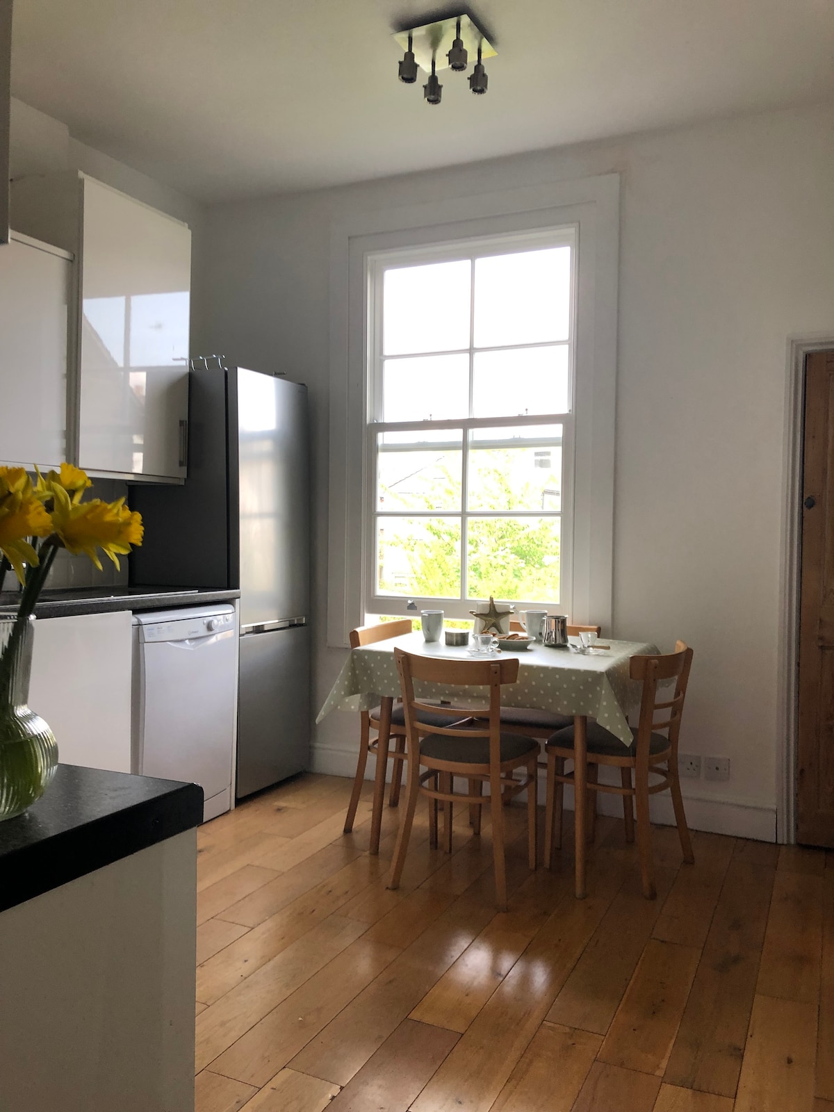 Cuir tús leis an lá le cupán tae ar ardán dín na gréine sula bhfillfidh tú ar chistin bhán shúilíneach chun bricfeasta a dhéanamh. Cuireann tolg compordach áit aoibhinn ar fáil chun leabhar a léamh laistigh den árasán briosc seo i bhfoirgneamh gleoite Seoirseach. Tá an t - urlár uachtarach nua - athchóirithe seo suite go lárnach laistigh de nóiméad ó fheadán Fulham Broadway, rud a thugann rochtain ildánach duit ar gach ceann de Londain Láir. Tá cistin úrnua ina bhfuil iarta comhiompair, oigheann, cuisneoir, micreathonnán agus meaisín caife Nespresso i seomra fáiltithe atá geal agus aerach. Tá áit suí ar bhinse feistithe le cistin/seomra suí an phlean oscailte. Tá calafoirt USB ag an bhfáiltiú chun do ghuthán a ghearradh (tabhair leat do chábla fóin) agus teilifíseán nua - shuiteáilte le Netflix. Osclaíonn na seomraí fáiltithe amach ar ardán thiar theas os cionn crainn aibí a théann go dtí an pháirc. Áit fhoirfe chun taitneamh a bhaint as caife maidine nó deoch luath tráthnóna, rud a chuireann ar do chumas an t - atmaisféar dordánach a mhúscailt. Tá Wi - Fi saor in aisce ar fáil. Is maith leis an svuít seomra leapa vardrúis shaincheaptha le crochadáin agus seomra cithfholcadáin ensuite úrnua le cithfholcadán báistí agus soilsiú gné. Soláthraímid foireann línéadaigh úir le haghaidh d'fhanachta, caife Nespresso, tae, bainne, milseáin agus lámhleabhar saincheaptha chun tú a threorú chuig bialanna agus riachtanais áitiúla. Cibé an bhfuil d'fhanacht i Londain le haghaidh gnó, camchuairte, siopadóireachta nó pléisiúir, is áit lárnach iontach é seo i Londain. Ar chúl an fhoirgnimh tá rochtain ar shiopaí/ bialanna caife agus ar pháirc aoibhinn, agus tá Rothair Boris ar fáil ar cíos má tá tú galánta ag dul ar thuras. 07703004354 - Tá mé beagnach 24/7! Tá stad bus díreach taobh amuigh den árasán le bealaí a thairgeann turais ghearra chuig nithe is díol spéise a bhfuil tóir orthu i Londain. Tá Árasáin Bhóthar Harwood suite go hidéalach an - ghar do Fulham Broadway, rud a thugann rochtain duit ar lár iomlán Londan tríd an líonra faoi thalamh agus seirbhísí bus iomadúla. Tá atmaisféar dordánach agus bailiúchán mór bialanna agus siopaí sa cheantar a thairgeann réimse leathan cócaireachta ó Fhrancach (Cote Brasserie) go Téalainnis (£ 9.95 le haghaidh lón dhá chúrsa os coinne na n - árasán) go Byron Burger go dtí Beár Oisrí. Tá seomra aclaíochta, pictiúrlann agus páirc álainn (le cúirteanna leadóige) agus iad go léir laistigh de caith clocha!