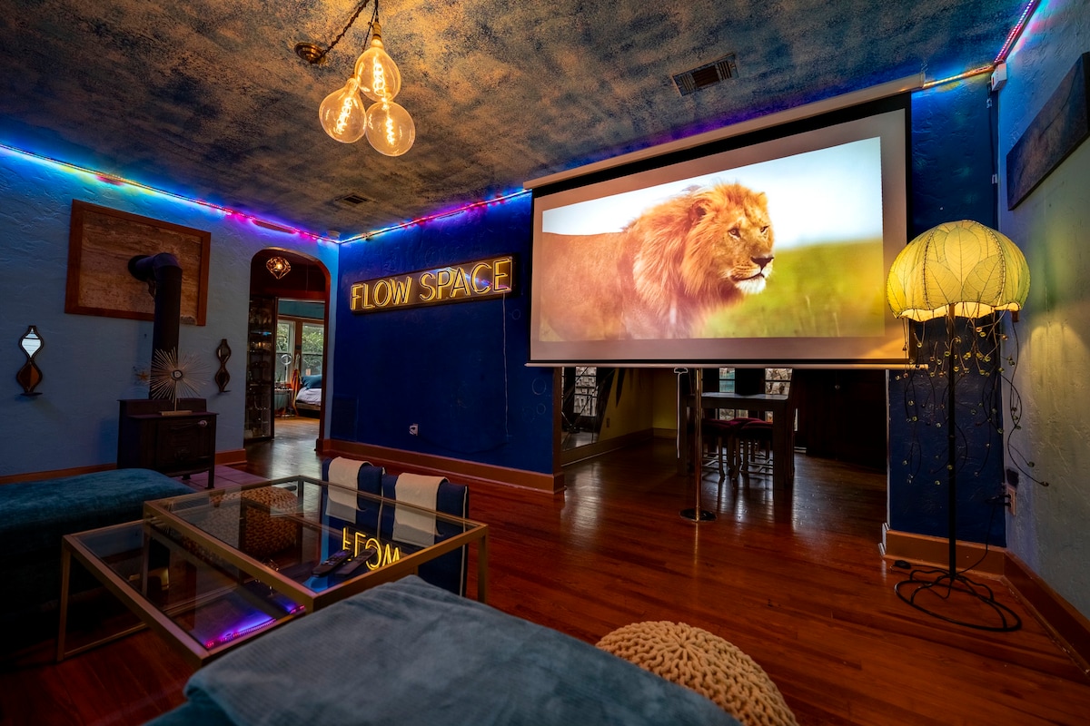 Eispéireas Casa Morado, Tearmann Ealaíonta Uathúil. Fáilte chuig ár dtearmann bríomhar teolaí, atá suite i gcathair Gainesville. Is meascán é ár spás atá coimeádta go cúramach de chompord agus de chruthaitheacht, atá deartha dóibh siúd a bhfuil meas acu ar rudaí uathúla ealaíonta agus atmaisféar suaimhneach. Tá an réadmhaoin oiriúnach go compordach do 4 dhuine agus tá 2 sheomra leapa agus 1 seomra folctha ann ina bhfuil go leor seomra suí agus spás cistine. Ceadaímid peataí sa réadmhaoin, ach gearraimid táille peataí $ 100 ar an nglanadh breise.