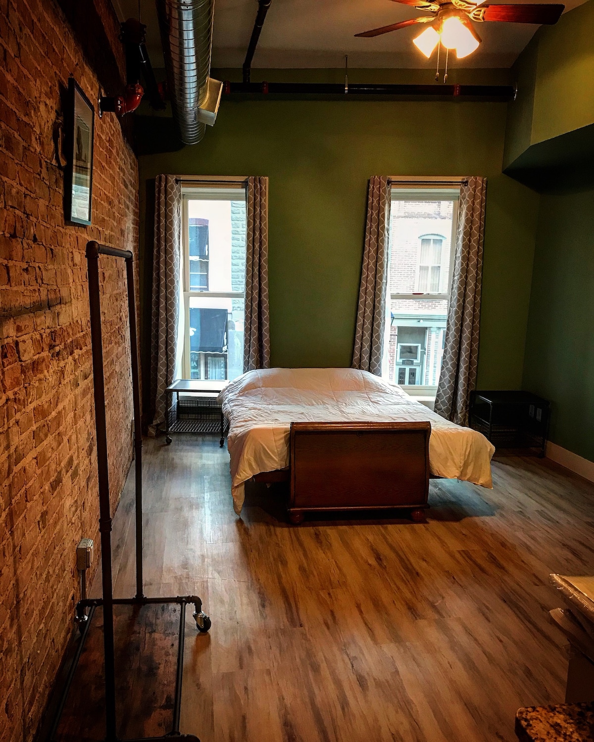 Árasán nua - chóirithe i lár an bhaile i lár an bhaile. Feistis nua, clúid oifige le deasc, cistin agus fearais lánmhéide, teilifís chliste, Wi - Fi saor in aisce, spás maireachtála mór oscailte le seomra leapa príobháideach agus folcadán. An - ghlan. Tá deic chomhroinnte in aice láimhe le boird agus cathaoireacha ar fáil le húsáid. Is árasán dara hurlár é seo i gcúl Simply Galánta Boutique agus mar sin tá 17 gcéim ann chun dul chuige ón taobh amuigh. *An chuid eile éasca, déantar gach knob dromchla agus doras a dhíghalrú tar éis gach fanachta.