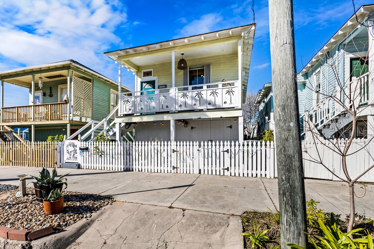 Lig an dea - uair rolladh sa 1904 bungaló stairiúil a fheictear, leis an urlár New Orleans. Lonnaithe i gcomharsanacht Kempner Park. Bain sult as an spaisteoireacht gairid 3 bhloc go croílár na Seawall, téigh ar an rollóir ar Ché Pleasure, lig do scíth sa ghrian agus surfáil agus fuaraigh síos ag an Deic Poop clúiteach nó ag an mbarra Float/Paitió, téigh ar an tralaí chuig Ceantar na Sraithe. Cuireann an 2 sheomra leapa seo, saoire ghearr amháin sa seomra folctha, calafort baile ar fáil duit ionas gur féidir leat an t - oileán a iniúchadh nó díreach saoire ghearr a fháil le haghaidh saoire rómánsúil.