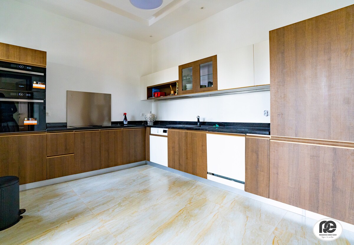 Fáilte go "Résidence Canaan"! Lig do scíth i spás geal, galánta, suaimhneach atá deartha chun tú a chur ar do chompord. Cibé an bhfuil tú anseo le haghaidh gnó nó saoire ghearr, tá gach rud i bhfeidhm chun go mbraithfidh tú ar do chompord. Tá timpeallacht shuaimhneach ar fáil in Abomey-Calavi, baile ar imeall Cotonou, i bhfad ó thruailliú na cathrach. Tá sé suite go straitéiseach agus tá sé éasca teacht ar láithreacha turasóireachta éagsúla — cé gur féidir leis an trácht a bheith AN-THROMA le linn na mbuaicthráthanna.