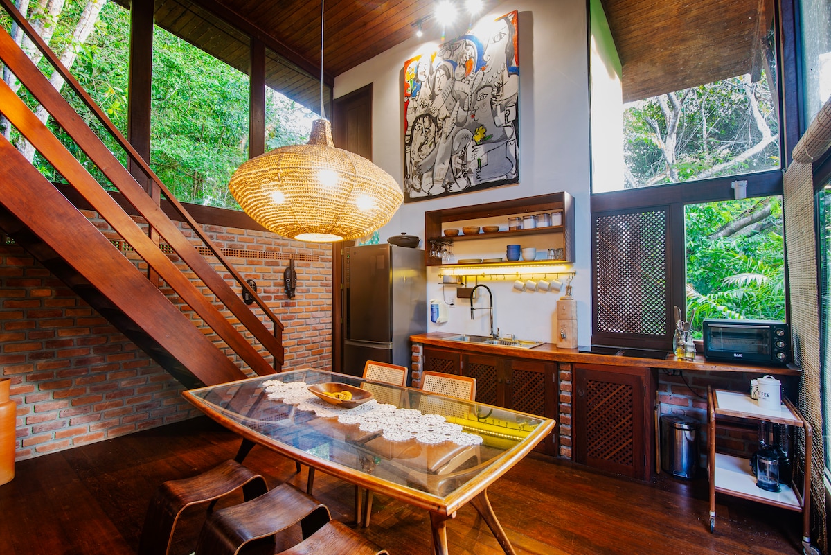 Cábán Foraoise in aice le Morro de Sao Paulo Éalaigh chuig an bhfolach uathúil suaimhneach seo i bhforaois thrópaiceach Gamboa. Leis an lochta 80 m² seo, atá ceardaithe le hobair cheardaí in adhmad agus i ngloine, is féidir leat tú féin a thumadh go hiomlán sa dúlra máguaird. Bain sult as ardán fairsing inar féidir leat éin, moncaithe beaga agus speicis eile a bhreathnú, díreach 100 méadar ó thrá ghainimh bhán phúdrach Gamboa. Is féidir seirbhís bricfeasta agus glantacháin a shocrú agus gearrfar í ar leithligh.