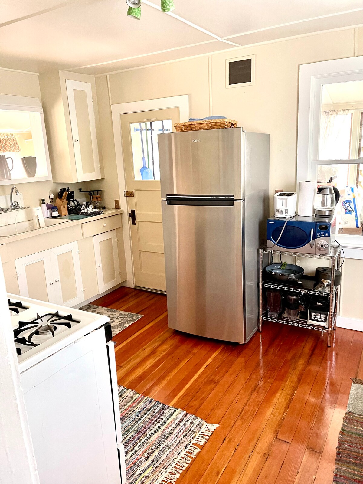 Teach compordach ar shráid bheag na comharsanachta, níos lú ná míle chuig Ascaill na bhFathach i bPáirc Stáit Humboldt Redwoods. Tá fáilte roimh pheataí agus roimh pháistí. Tá clós príobháideach agus cistin iomlán agat le taitneamh a bhaint as, agus seomra níocháin má theastaíonn sé uait. Tá sorn dóite adhmaid sa seomra suí le haghaidh oícheanta cluthar. Beidh an spás mór seo oiriúnach go héasca do 4 dhuine fásta nó níos mó, chomh maith le páistí agus peataí.