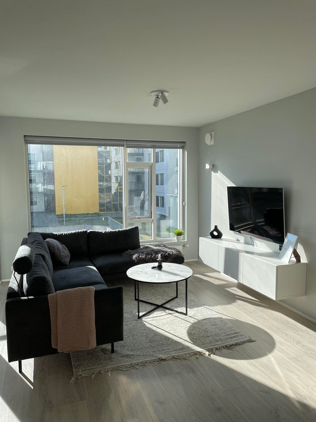 A convenient, stylish apartment with all the amenities. In the lovely Vellir neighbourhood of Hafnarfjörður, the apartment is right next to grocery stores, a Hertz car rental, convenient bus connections, cozy coffee shops, and several of Iceland's iconic swimming pools. By car, central Hafnarfjörður is 5 minutes away, central Reykjavík is 15 minutes away, and both Keflavík Airport and the Blue Lagoon are just 30 minutes away.