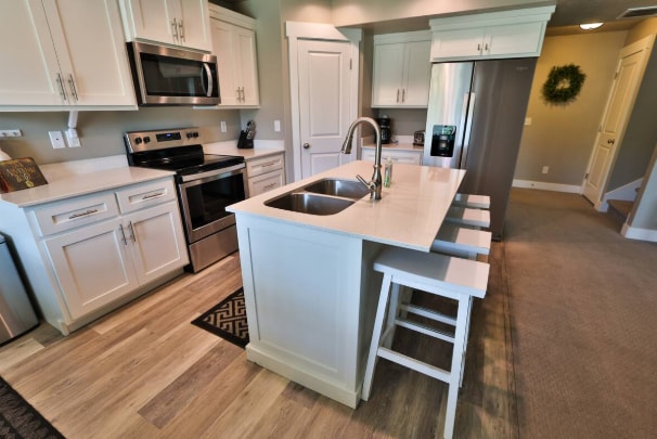 Tearmann baile mór álainn i gcroílár Garden City. Lonnaithe go lárnach, ná siúl ach 2 bhloc go dtí an lár le haghaidh croithe, siopaí agus bialanna. Caith an lá ag an loch i rith an tsamhraidh (níl ach 3 bhloc ar shiúl!), nó ag Beaver Mountain sa gheimhreadh (tiomáint thapa 15 nóiméad). Cuirtear an chistin lánsocraithe agus na rudaí breise tuisceanacha ar fáil mar áis agus mar chompord duit. Is féidir tithe móra iomadúla in aice láimhe a ligean ar cíos ag an suíomh seo chun freastal ar ghrúpaí níos mó, mar sin déan áirithint go luath!