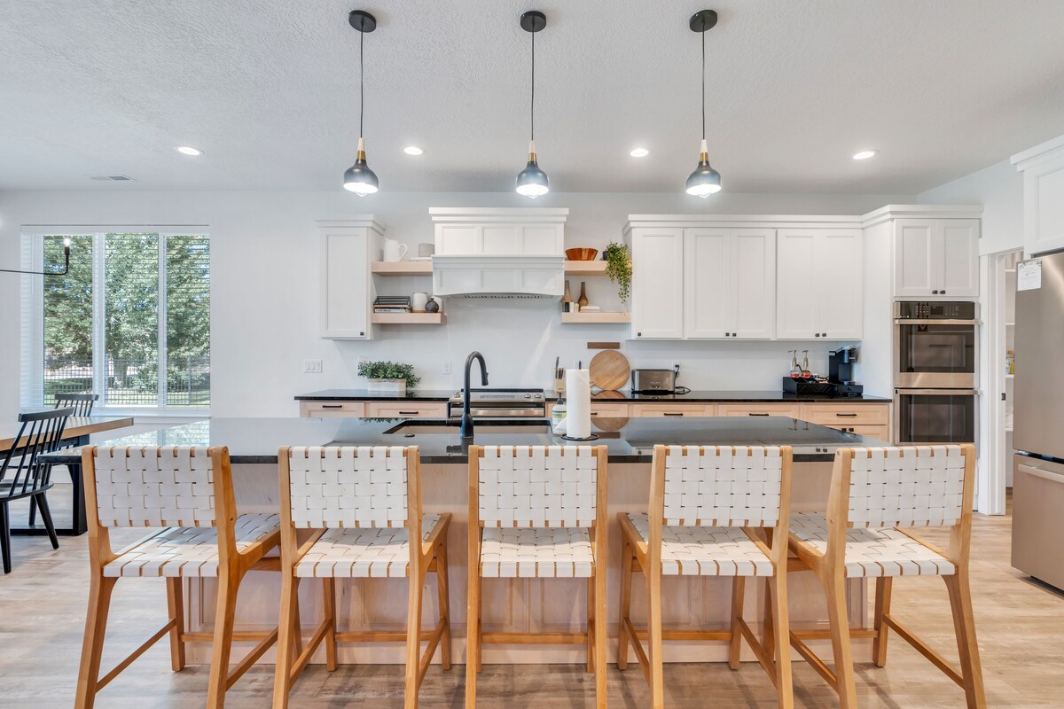 Fáilte go dtí Bear Lake Bungalow, teachín cluthar nuathógtha óna bhfuil fáil ar thrá phríobháideach, linn snámha, tobán te, pickleball laistigh, seomra allais agus go leor eile. An áit fhoirfe chun cuimhní cinn a dhéanamh le do theaghlach! • Páirceáil/crúca feithiclí áineasa • 4 sheomra leapa, 1 leaba rí, 2 leaba bhanríona agus seomra leapa leaba bhuinc ina bhfuil spás do 7 nduine. Seomra bhreise faoi staighre ina bhfuil leaba dhúbailte • Deic mhór le poll dóiteáin. • Bain sult as galf díreach timpeall an chúinne ag Bear Lake Golf • Seomra mór cluichí le stuara, puzail, & leabhair. • Limistéar páirceála mór w/luchtaire feithiclí leictreacha