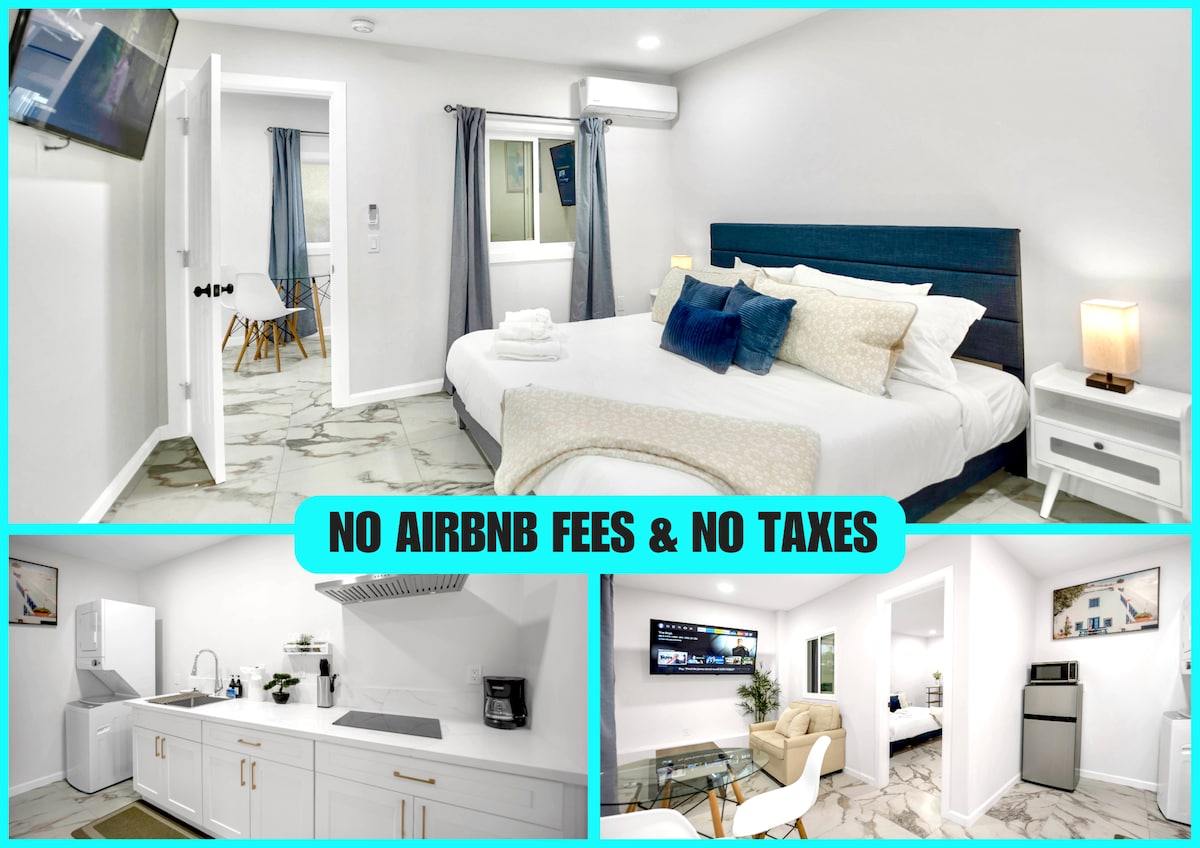 Welcome to your home away from home! Relax in this spacious guesthouse after an exciting adventure in Southern California. Optimized for comfort and privacy, this home boasts modern amenities and comfortable bedrooms. The master bedroom consists of a queen-sized bed, a spacious closet, and a stylish ensuite bathroom. The second bedroom features two twin-sized beds, great for children and individuals. There is also a fully equipped kitchenette, a cozy living room, and a private backyard.