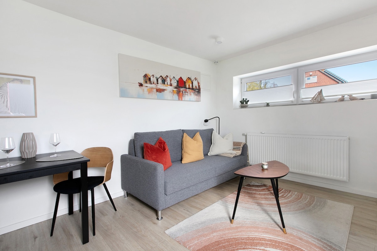 Tá North Beach Nixenhaus, ina bhfuil dhá árasán, suite in áit iontach – 150 méadar ón trá is áille i dTuaisceart Strander, Fuhlehörn. Tá an t-árasán beag seo ar an urlár uachtarach oiriúnach go foirfe do bheirt. Tá an leaba i nideog ar féidir í a dhúnadh le cuirtín. Ón bhfuinneog is féidir leat breathnú ar an díog. Nóta beag dár n-aíonna an-mhóra: Is é 2.07 méadar airde an tsíleála anseo. Tá an t-árasán seo suite os cionn Nordstrandnixe ar an gcladach.