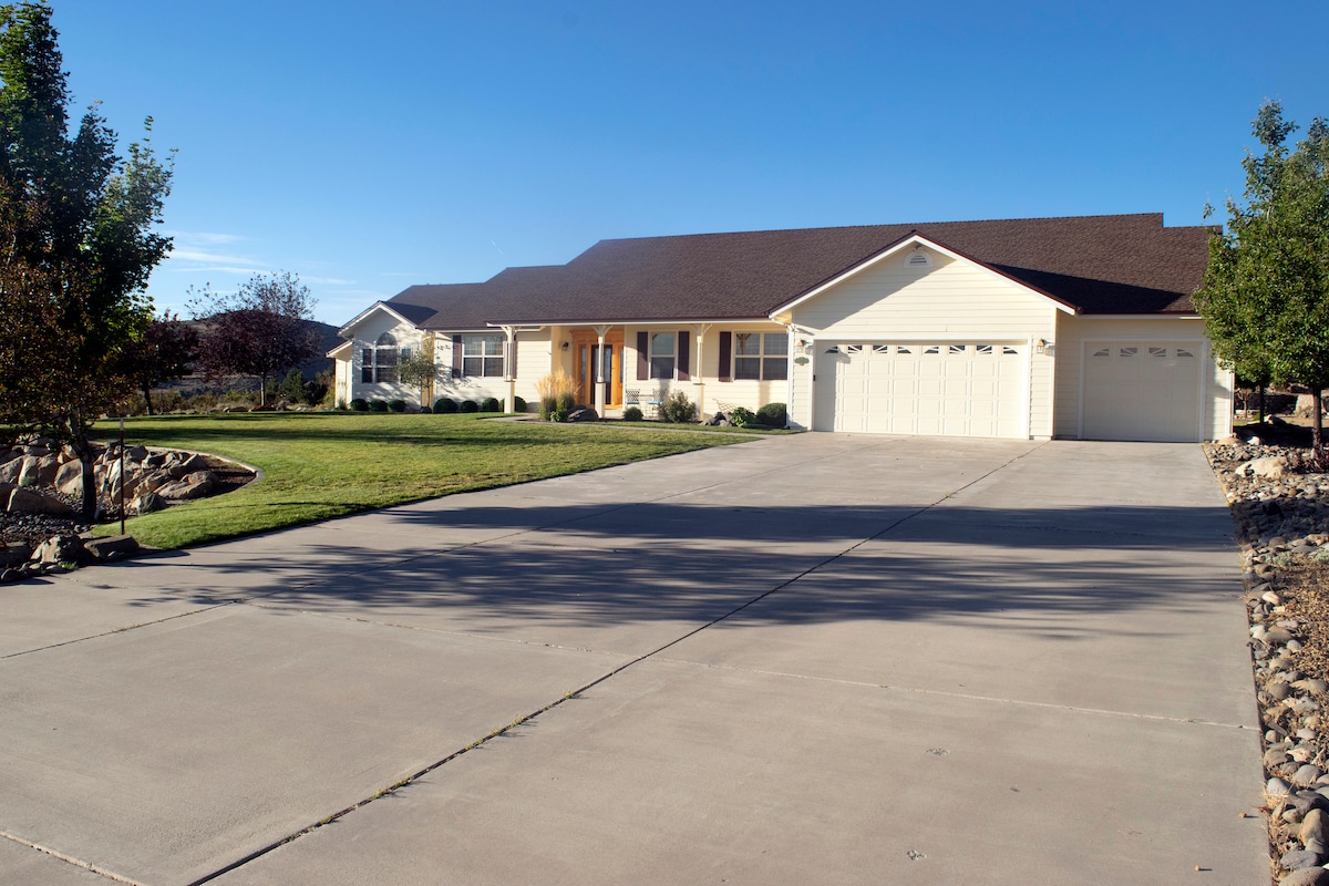 Tá ár dteach fairsing compordach suite ar 5 acra de mesa grianmhar le radhairc áille den suaitheantas Sierra máguaird, bunchnoic, agus Carson Valley. Is áit iontach é chun do scíth a ligean, súgradh agus cócaireacht a dhéanamh do theaghlaigh agus do ghrúpaí. Tá seomra agus cistin iontach againn, leapacha compordacha, agus tábla linn snámha taobh istigh agus faichí móra tosaigh/cúil & póirsí chun súgradh agus scíth a ligean lasmuigh. Kirkwood -23 míle, Heavenly -21, Lake Tahoe -26, Hot Springs, iascaireacht, snowmobiling -10, supplies -13, agus EV Level 2 Universal Charger.