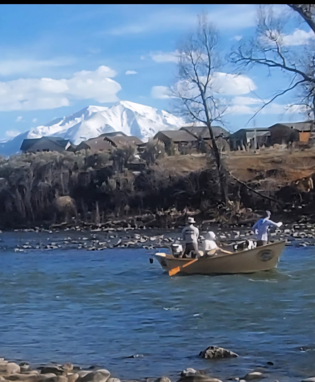 Teachín seomra leapa amháin sómasach atá suite go díreach ar bhruacha na hAbhainn Roaring Fork, os cionn 300 troigh d'uiscí bonn óir, do sheoladh bád príobháideach féin. Bain sult as an tine champála cois abhann agus as an ngazebo le haghaidh bia amuigh faoin aer agus tú ag breathnú ar raftaí agus ar bháid deoraí ar snámh faoin. Bí ag súil le cuid dár radharcanna coitianta ar iolairí, ospreys, réisc ghorm mhór, fianna agus elk a fheiceáil. Le nochtadh an Deiscirt is féidir éirí na gréine agus luí na gréine aoibhinn agus iad ag an réadmhaoin thírdhreacha álainn locháin, sruthanna agus gairdíní a bhfuil locháin idilelacha, sruthanna agus gairdíní iontu.