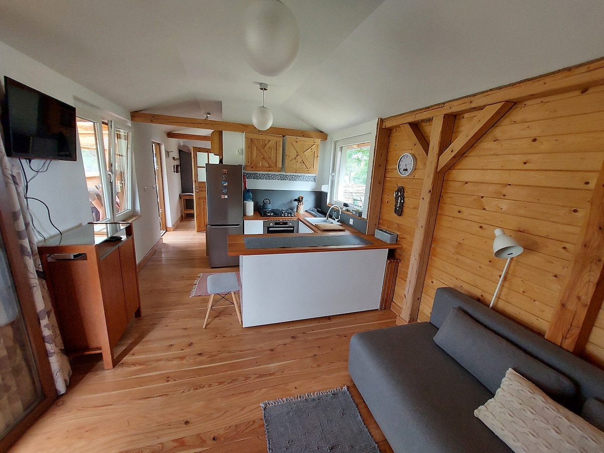 Teach gleoite ar Loch Morzycko ar feadh na bliana – foirfe do shaoire ghearr rómánsúil nó do dheireadh seachtaine le cairde ag an ngríoscán. Tá gach rud ann agus tá sé téite, rud a thairgeann compord i ngach séasúr. Tá an loch i gcrios ciúin, mar sin is féidir leat do scíth a ligean gan mhótarbháid nó gan scairdsciálaí. Tá bád rámhaíochta agus cadhc san áireamh. Foirfe don iascaireacht, do shiúlóidí foraoise agus don rothaíocht ar chosán Blue Velo, le rochtain dhíreach ar an uisce, ar an duga, ar an trá agus ar an bhforaois. Críochnaíonn radhairc áille locha agus luí gréine suaimhneacha an t-eispéireas ó cheann ceann na bliana.