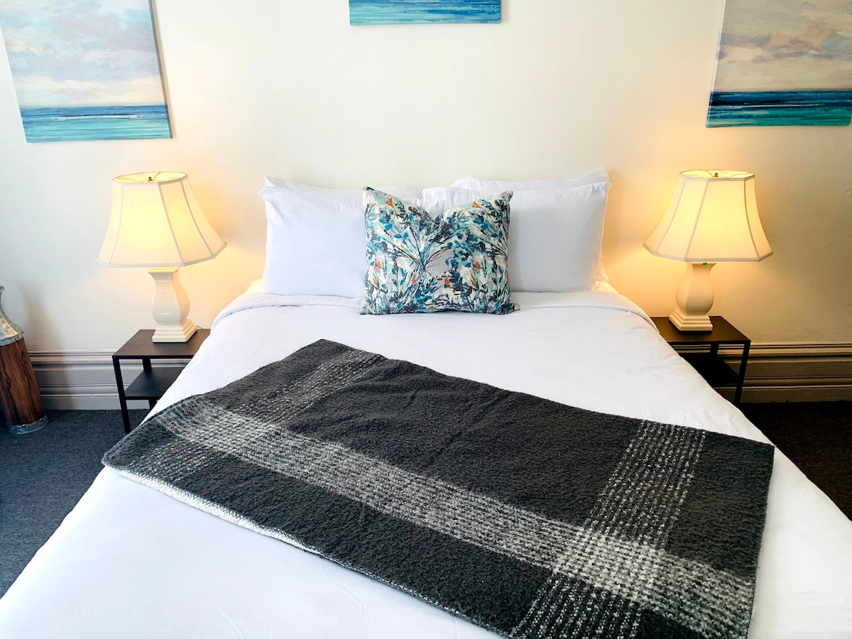 Bain sult as Ceathrú bríomhar Gaslamp San Diego! Suite sa suíomh IDÉALACH, níl sa teach uathúil seo ach CÉIMEANNA chuig an Ionad Coinbhinsiúin & Páirc Petco, na bialanna, na siopaí agus na beáir te go léir! Osclaíonn Comfy King Bed thuas staighre chuig PAITIÓ GAIRDÍN le radharc na cathrach chun do scíth a ligean! Gach riachtanas san áireamh, cistin iomlán w/ tógtha sa chuisneoir FÍONA! PÁIRCEÁIL SAOR IN AISCE AR FÁIL Foirfe do lánúineacha, d'eachtránaithe aonair, & do thaistealaithe gnó. Ní cheadaítear cóisirí ná ceol ard!