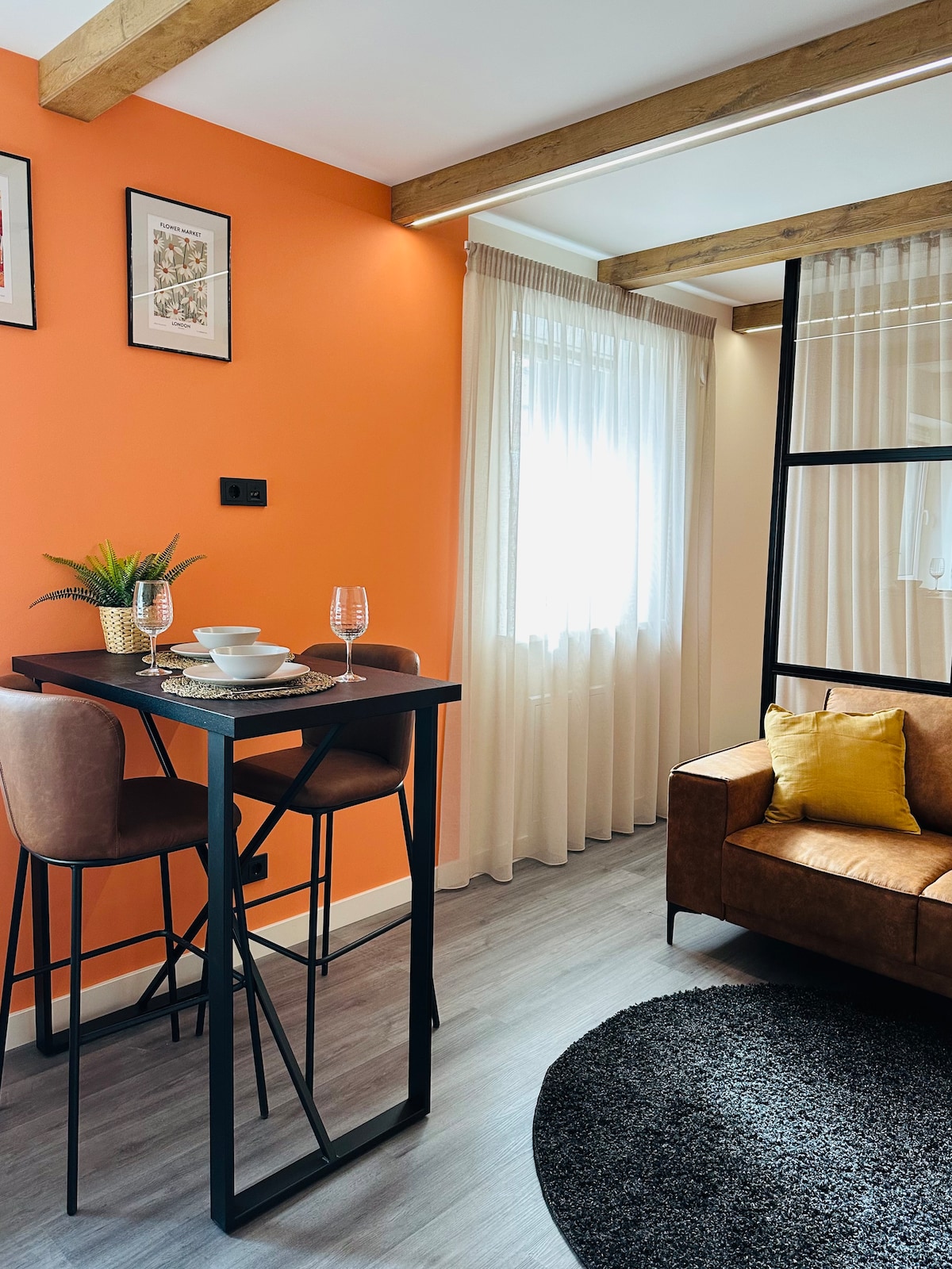 Bain sult as fanacht compordach san árasán aon seomra leapa seo atá deartha go cúramach, atá suite i bhfoirgneamh stairiúil Nua - Aoiseach sna 1930idí. Rinneadh an spás a athchóiriú go cúramach chun a bhua bunaidh a chaomhnú. Tá sé geal, fáilteach agus tá saothar ealaíne leis na healaíontóirí Laitviacha is fearr liom ann. Cibé acu an bhfuil tú ag tabhairt cuairt ar Riga don obair nó don fhóillíocht, tá árasán te agus dea-fheistithe sa teach seo—foirfe do thaistealaithe aonair, do lánúineacha, nó do thuismitheoirí a bhfuil leanbh acu.
