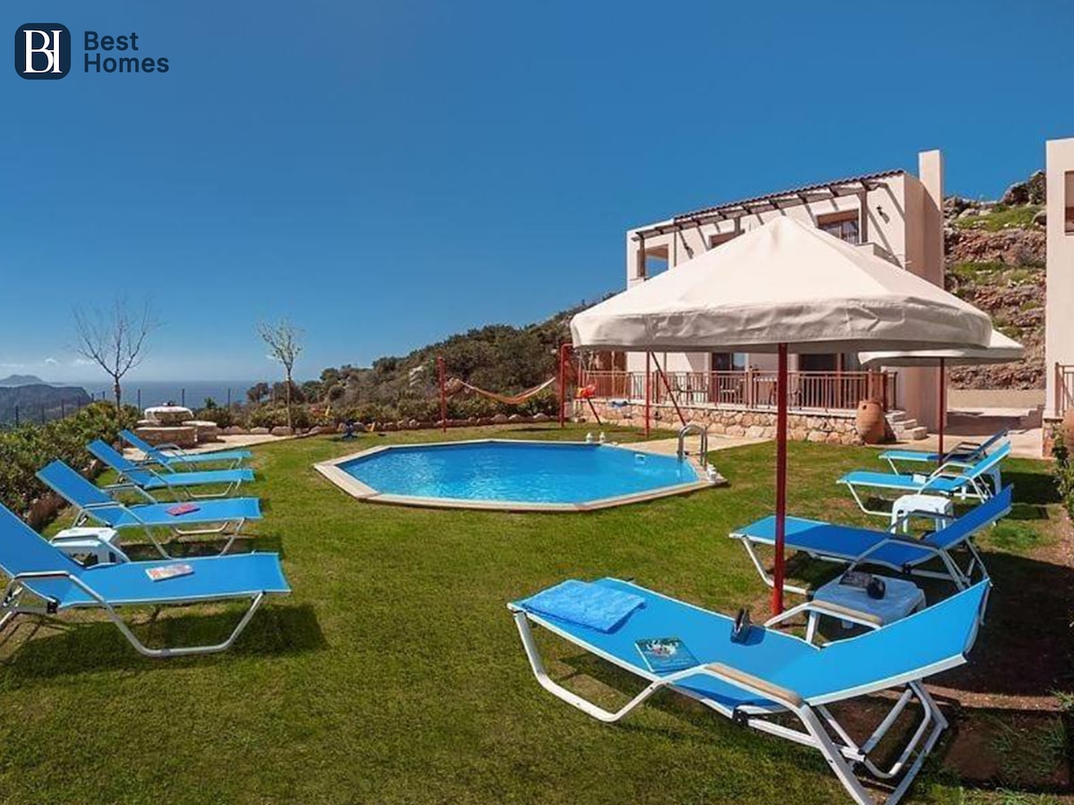 Éalaigh go Villa Panorama, tearmann nua in aice le Saktouria, an Chréit Theas. Neadaithe i nádúr gan teagmháil, cuireann sé síocháin agus príobháideacht ar fáil. Gaze ag radhairc gan bhac ar shléibhte maorga agus ar Mhuir na Libia gan deireadh. Féach ar thimthriall an dúlra agus ar an gcosmas a nochtann gach lá thar an aigéan, réaltaí ag lonrú i spéir na hoíche. Meascann an villa compord nua - aimseartha le tírdhreacha Cretan barántúla, gan ach tiomáint 10 nóiméad chuig tránna iontacha. Lig do scíth ag an linn snámha phríobháideach, bí ar do shuaimhneas, agus lig do scíth i bparthas.