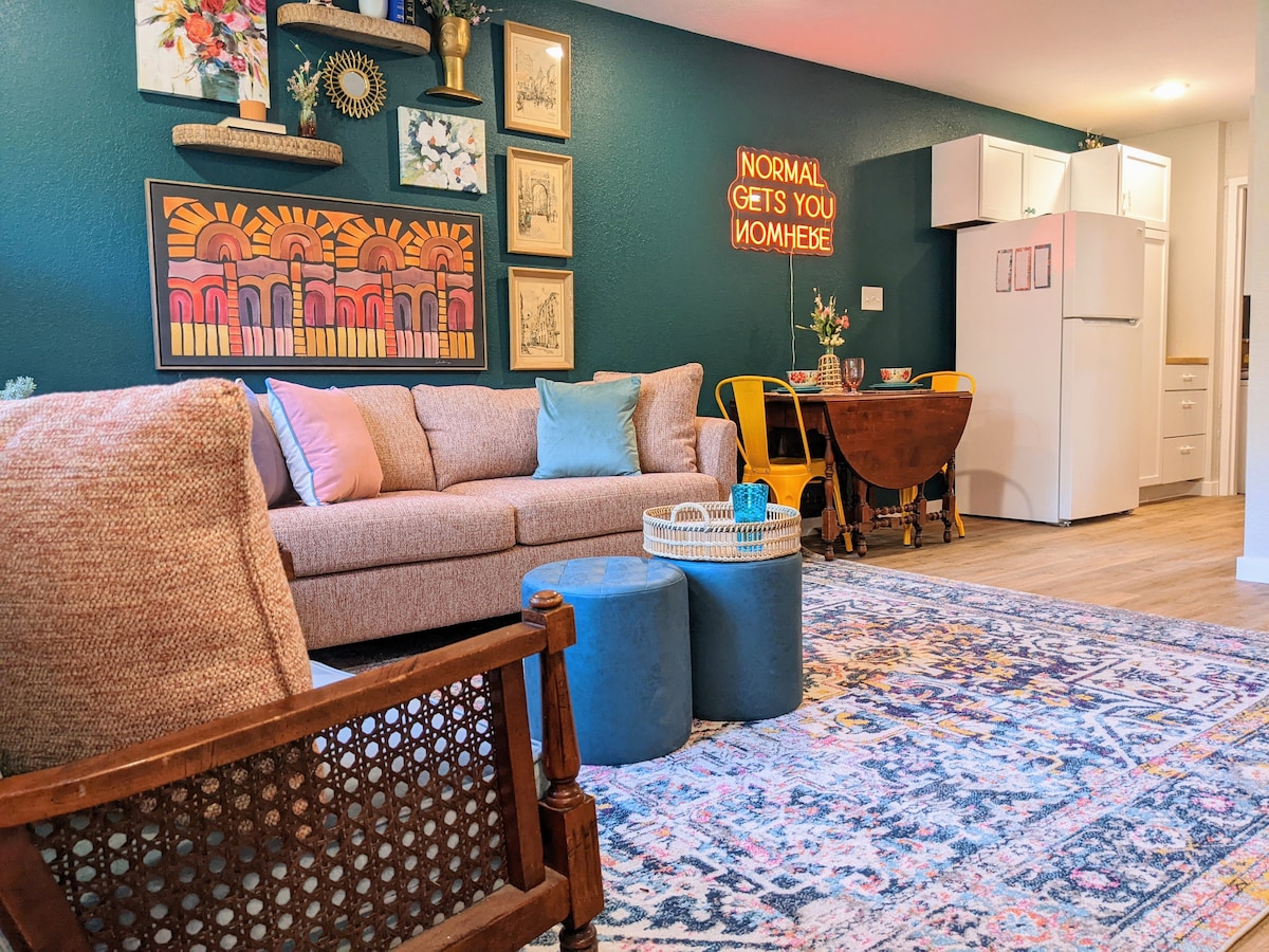 Fáilte go dtí an Naoú Svuít Sráide - teach compordach, teolaí, suite go lárnach i lár Manhattan! Is árasán lochta dara hurlár atá nuashonraithe go hálainn é Suite B ina bhfuil bealach isteach ar leith, cistin, seomra folctha, leaba bhanríona agus tolg tarraingthe amach - agus iad go léir laistigh d'achar siúil ó lár na cathrach, Aggieville, KState, Páirc na Cathrach agus go leor eile! Le páirceáil phríobháideach lasmuigh den tsráid, línéadach tí glan úr, spás lasmuigh, agus neart saoráidí, is rogha mhaith é an Naoú Svuít Sráide do d'fhanacht san Úll Beag!