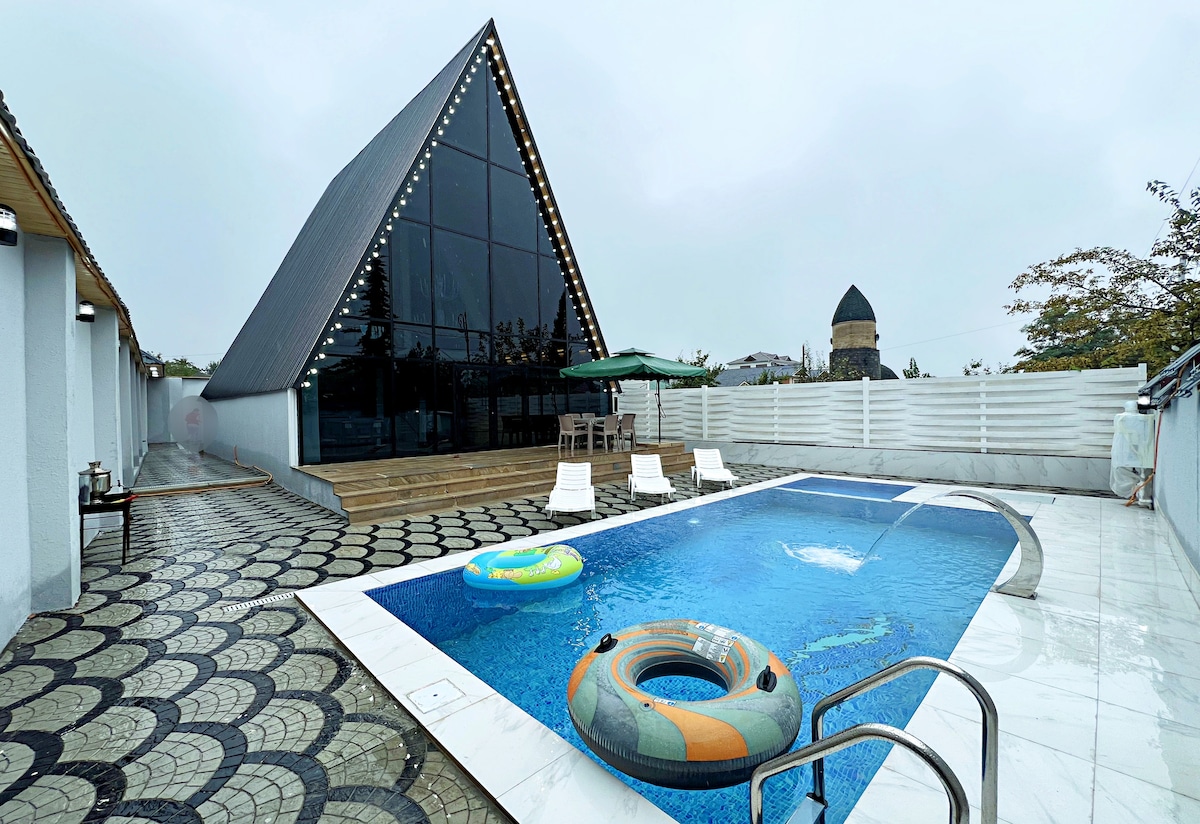 Teach gleoite 2 scéal i lár Gabala, timpeallaithe ag glasra agus crainn torthaí. Gnéithe 3 sheomra leapa, áiléar, 3 chistin, 2 sheomra folctha, agus téamh le chéile. Codlaíonn sé 12 -14 aoi. Bain sult as linn snámha phríobháideach 8×4 m (clúdaithe agus téite sa gheimhreadh), gazebo, samovar, beárbaiciú, bileog mhiotail le haghaidh cócaireachta, agus Wi - Fi saor in aisce. Foirfe do theaghlaigh nó do ghrúpaí atá ag lorg compoird, spáis agus fanacht síochánta gar do gach díol spéise sa chathair.