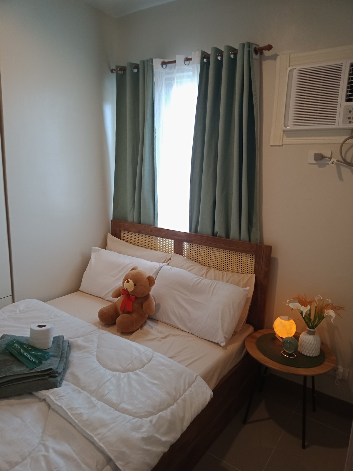 Situated on the 3rd floor of an apartment building, enjoy your stay here with your friends and dine outside the patio! What we have: -AC -Unlimited WIFI -Bingewatch all night as we have NETFLIX -Kitchen with single Induction stove + complete utensils -Refrigerator What we don't have: -Water heater -Projector (the one in the photo) is owned by the previous tenant -Parking area (but there's limited street parking for motors)