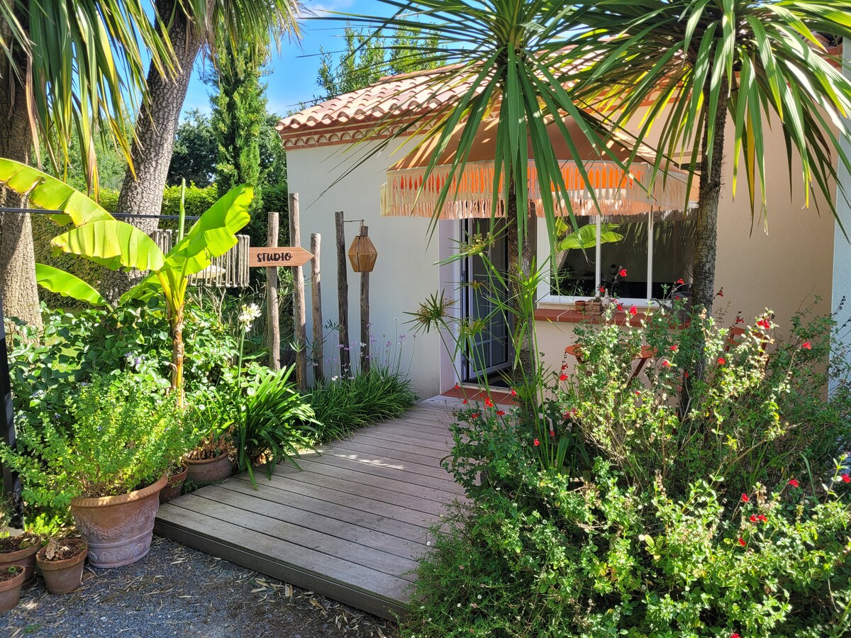 Stiúideo chic agus nua - aimseartha de 20m2 atá feistithe le leaba dhúbailte agus tolg BZ, cistinéad feistithe. Seomra cithfholcadáin/ WC. Teilifís Chliste/Netflix. Tugann an fhuinneog ghloine rochtain ar an taobh amuigh ina bhfuil bord agus beárbaiciú ag fanacht. Bealach isteach coiteann trínár ngeata ar chúl ár dtí. Páirceáil in aice láimhe. Dochtúirí gar do shiopaí de shiúl na gcos (ollmhargadh, cógaslann, bácús, tobac, bialann beáir). Aer súgartha do pháistí. 20 nóiméad ó Nantes, 35 nóiméad ón trá, 1 uair an chloig ó Puy du Fou.