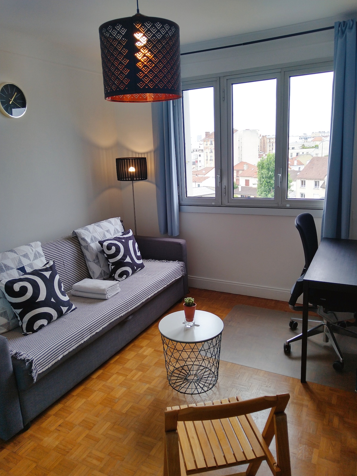 Fáilte go dtí ár n - árasán nua - aimseartha, atá suite cúpla nóiméad ar mheitreo ó La Défense agus an Porte de Clichy dinimiciúil, ceantar a bhfuil borradh faoi. Nascann an spás 22m2 seo feidhmiúlacht agus nua - aoiseachas chun fanacht dodhearmadta a chur ar fáil duit! Cibé an bhfuil tú i bPáras le haghaidh cruinnithe turasóireachta nó gnó, déanann ár suíomh lárnach do thaisteal níos éasca. Is furasta teacht ar na Champs - Élysées agus Montmartre i gceann 30 nóiméad ar an meitreo.