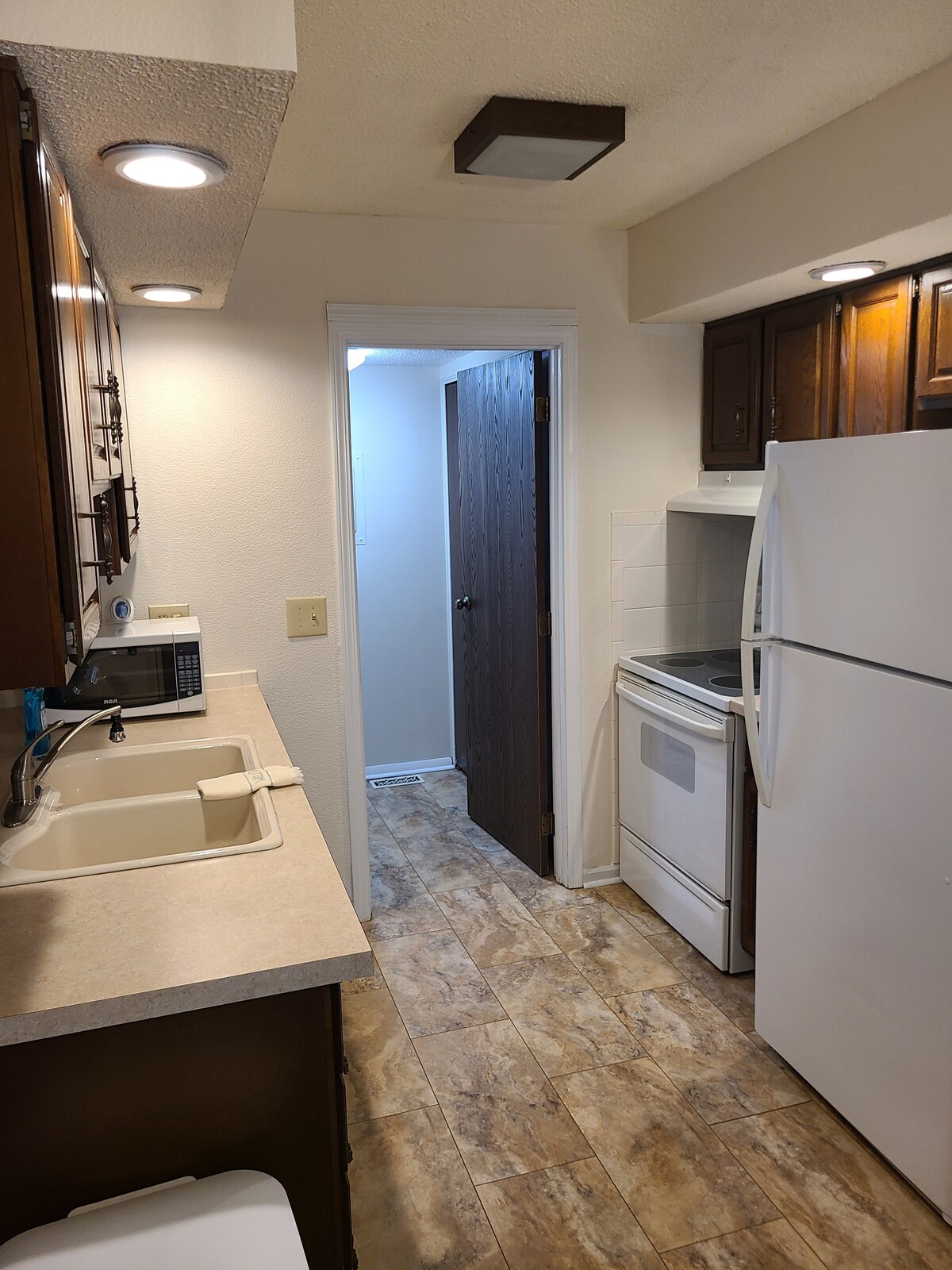 Fáilte go saol suaimhneach an bhaile bheag. Bungaló dhá sheomra leapa ar shráid chiúin. Athchóirithe le déanaí. Lán-fheistithe. Urláir chrua adhmaid bhunaidh, folcadh nua tíleanna, máistirseomra rí, leaba lae/leaba rollála sa dara seomra, tolg leapa banríona sa seomra suí. Cistin mhór tuaithe ina bhfuil uibheacha úra neamh-GMO agus caife áitiúil rósta. Deasc le printéir. Teilifís Roku sa seomra suí. Idirlíon Wi-fi. Páirceáil sa gharáiste. Clós fairsing le luascán boinn. Póirse gréine. Tá fáilte roimh pheataí. Glan, compordach, réidh le bheith mar theach s'againne.