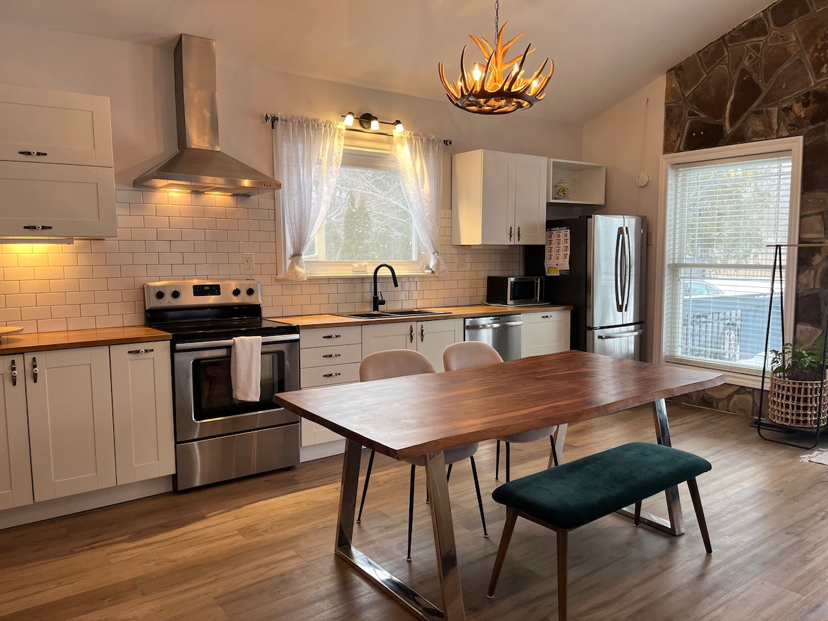 Loft Coillte, bunáit mhaith don trá agus do luí gréine iontacha, agus Blue Mtn, Scandinave Spa, C-wood, casino úrnua, go léir in aice láimhe. Go leor beáir, bialanna, trá agus rudaí eile le déanamh, laistigh de 5 nóiméad. Áit iontach le fanacht ann freisin. Lán le saoráidí amhail scagadh i bpaitió, folcadán XL w/ tuáille níos teo, leaba mhéid an Rí, teilifíseán 'The Frame ', cistin iomlán, WI - FI tapa, dall mótair...agus leanann an liosta ar aghaidh. Suite agus deartha chun príobháideacht agus scíth a chur ar fáil.