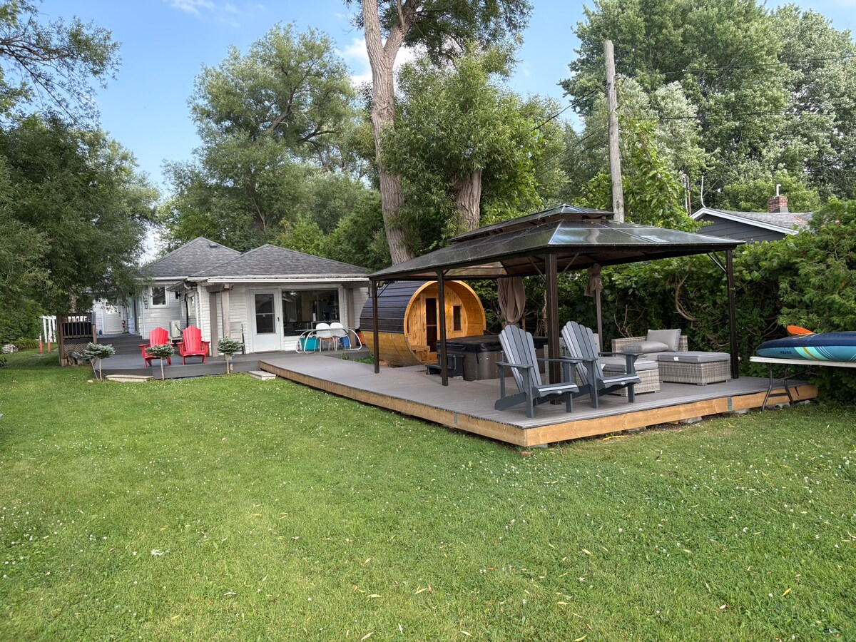 Bí ar do shuaimhneas ag ár dteachín 5 réalta cois uisce atá molta ag Sáróstaigh ar Loch Simcoe, díreach 80 KM ó Toronto! A aoi is fearr leat, cuireann sé sunsets agus sunrises iontacha ar fáil ón seomra suí agus ón lochta. Lig do scíth ar an trá ghainmheach le huiscí doimhne coime, agus bain sult as an bpaitió, beárbaiciú, beár, tolglann, cadhcáil agus iascaireacht. Le cistin lánfheistithe, 3 sheomra leapa, agus 2 sheomra folctha, freastalaíonn sé go compordach ar suas le 8 n - aoi. Cuir do shaoire ghearr bhrionglóideach in áirithe inniu don mheascán foirfe den scíth agus den eachtra!