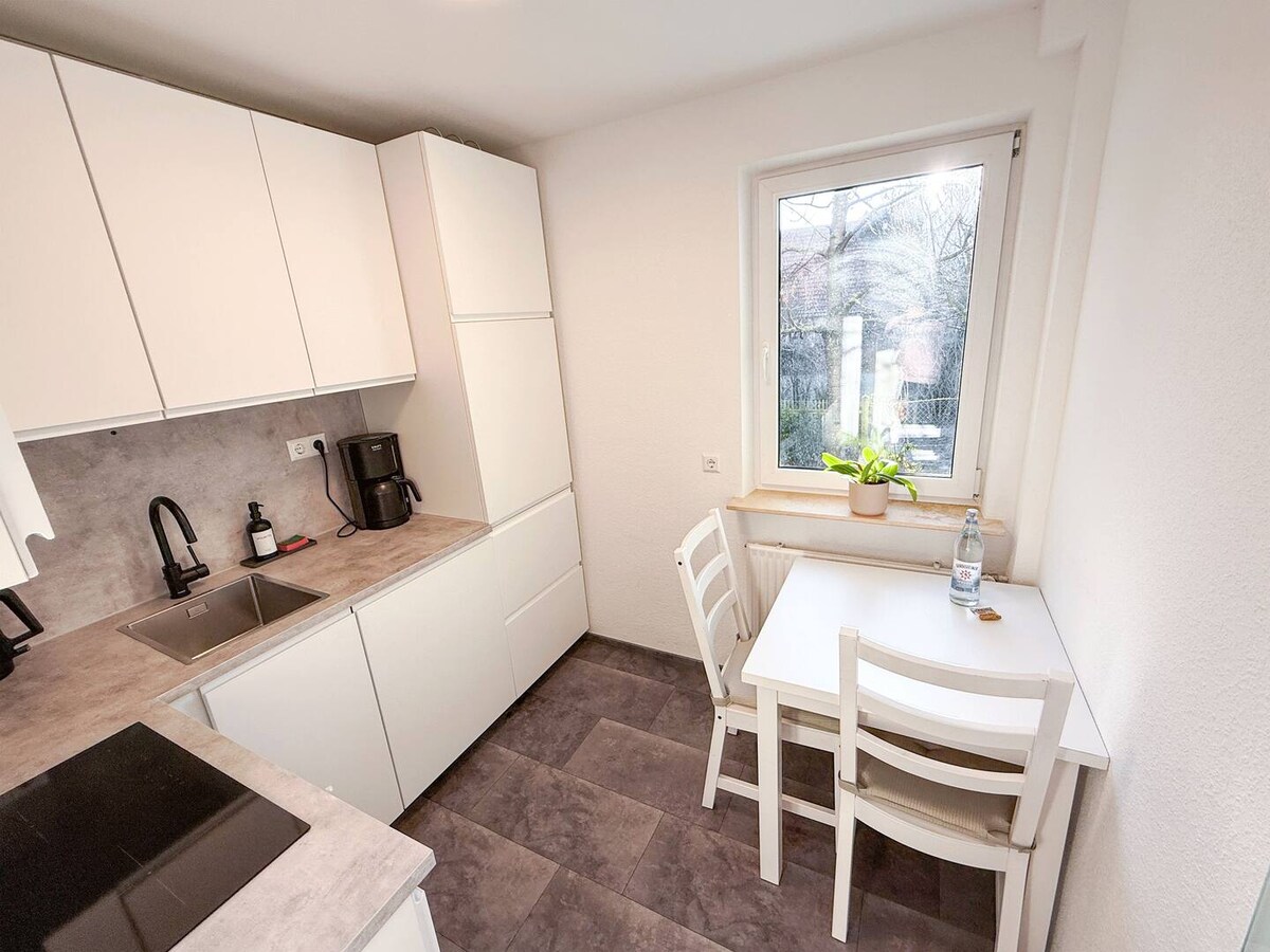 Árasán geal, feistithe go blasta le thart ar 30 méadar cearnach. Suite go lárnach i gcomharsanacht chiúin chónaithe. Siúlóid 3 nóiméad go dtí an t - iarnród éadrom agus i 22 min. i lár Stuttgart. Féinseiceáil isteach/ amach féideartha tríd an mbosca eochrach. Cistin lánfheistithe, Wi - Fi, teilifís chliste le Netflix, meaisín níocháin. Úsáideann ár n - aíonna an t - árasán go heisiach. Is féidir gach ceannachán is gá a dhéanamh de shiúl na gcos. Tá páirceáil phoiblí saor in aisce ar fáil in aice leis an teach.