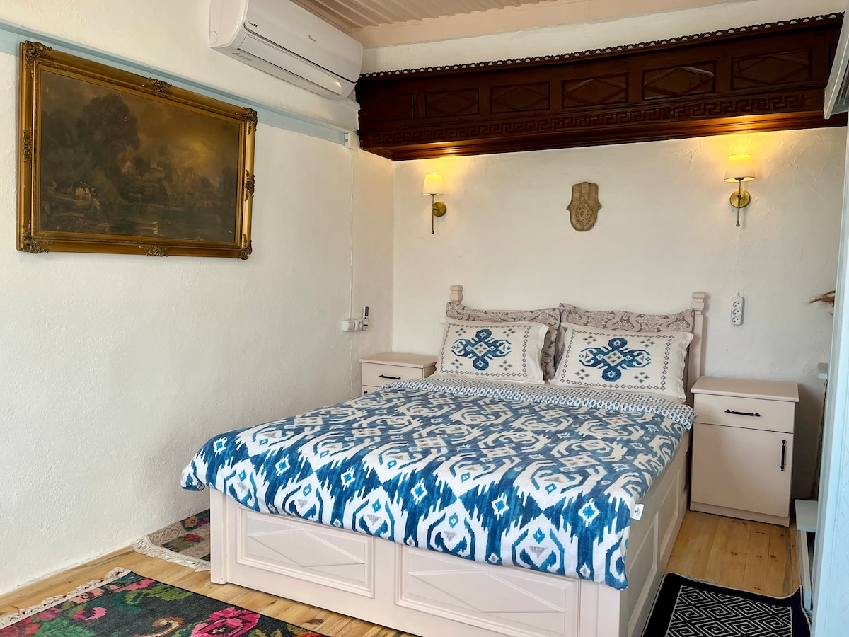 Teach 200 bliain d'aois, dhá urlár. Tá seomra suí ar bhalla cloiche thíos staighre. Tá 2 sheomra leapa dúbailte agus seomra leapa singil amháin suite ar an dara hurlár chomh maith le seomra folctha agus halla ar bhealach. Tá an teach ag iarraidh an sráidbhaile cáiliúil Şirince ó cosúil le tophill agus fós tá saoráidí uile an tsráidbhaile in achar gearr siúil. U r ag dul isteach sa teach trí ghairdín. Is féidir le U chomh maith taitneamh a bhaint as suaimhneas ár ngairdín agus tairbhe a bhaint as ár ndeochanna baile den chuid is mó a dhéanaimid freastal ar ár gcaife
